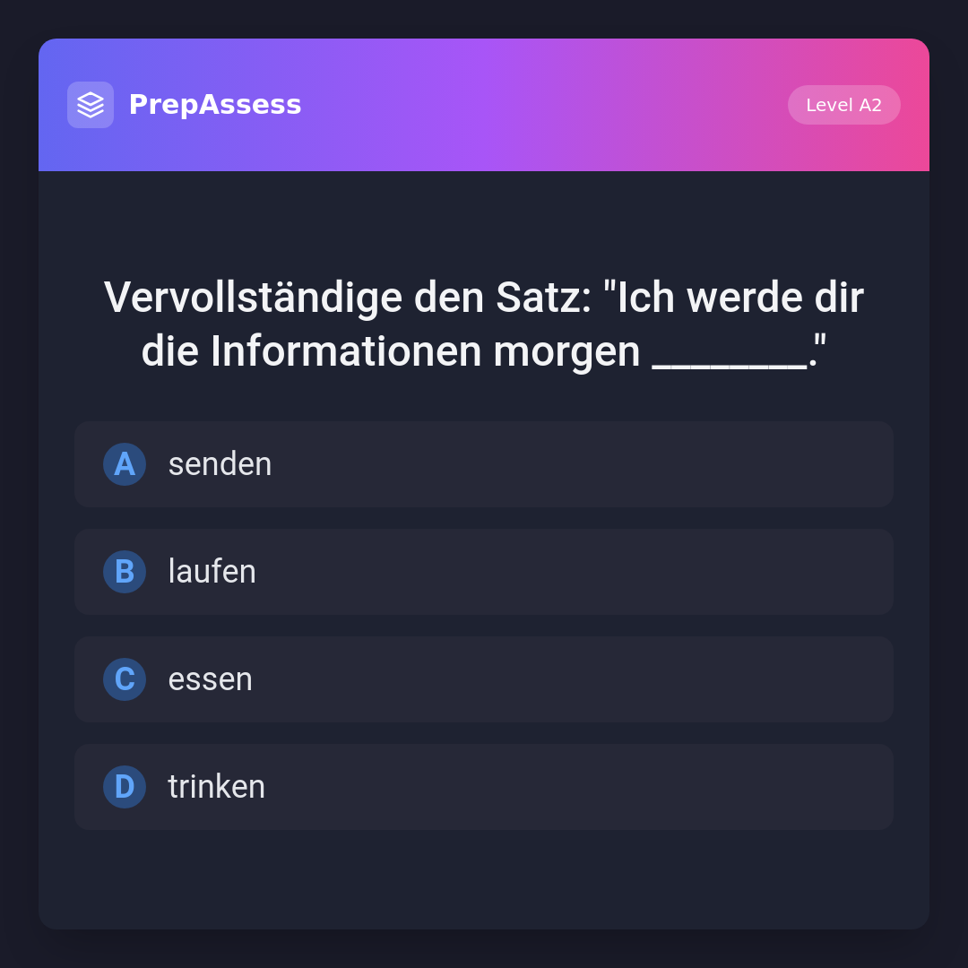 Vervollständige den Satz: "Ich werde dir die Informationen morgen ________."