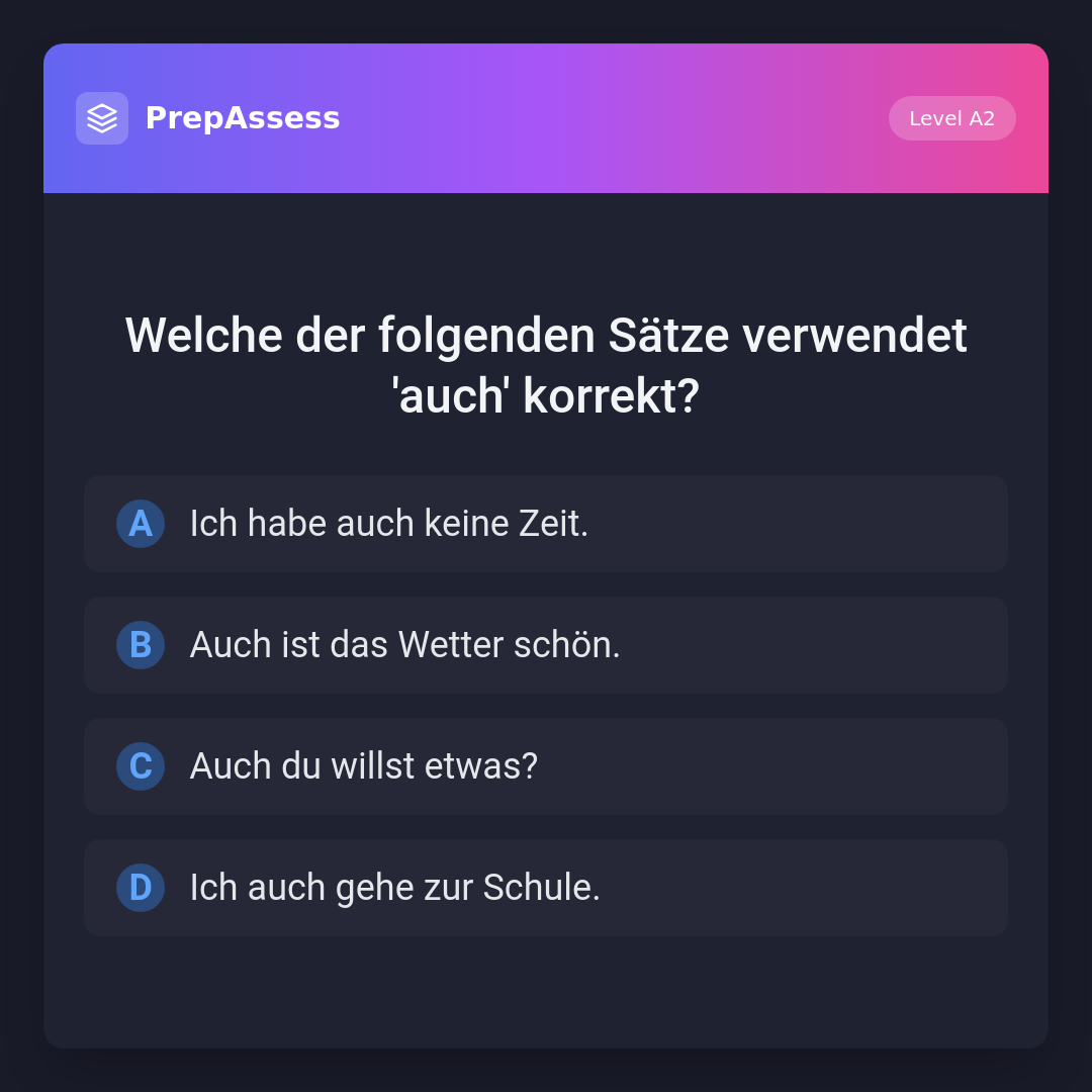 Welche der folgenden Sätze verwendet 'auch' korrekt?