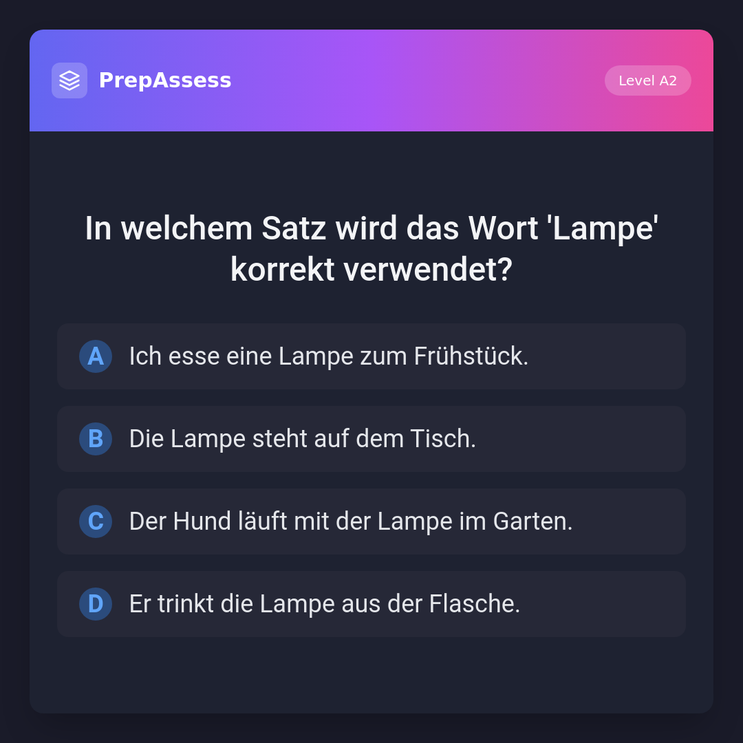 In welchem Satz wird das Wort 'Lampe' korrekt verwendet?