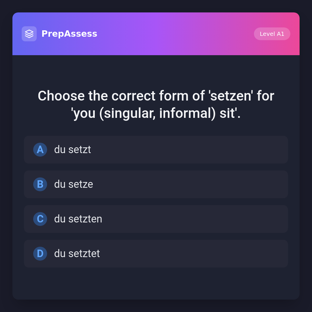Choose the correct form of 'setzen' for 'you (singular, informal) sit'.