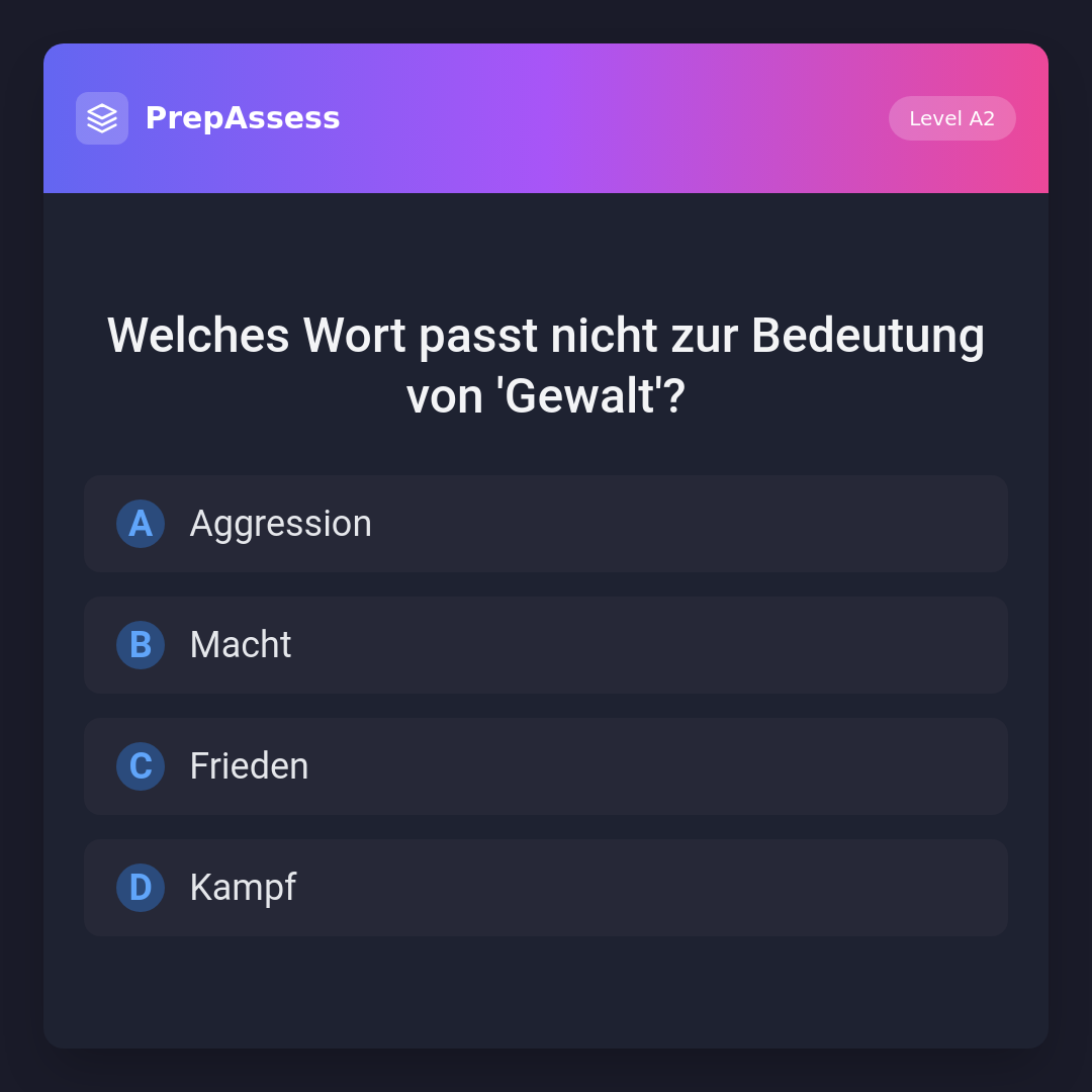 Welches Wort passt nicht zur Bedeutung von 'Gewalt'?