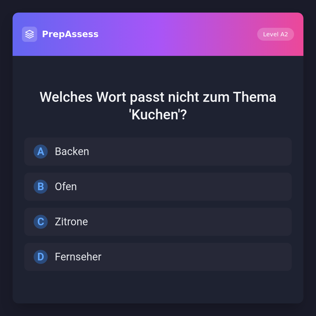 Welches Wort passt nicht zum Thema 'Kuchen'?