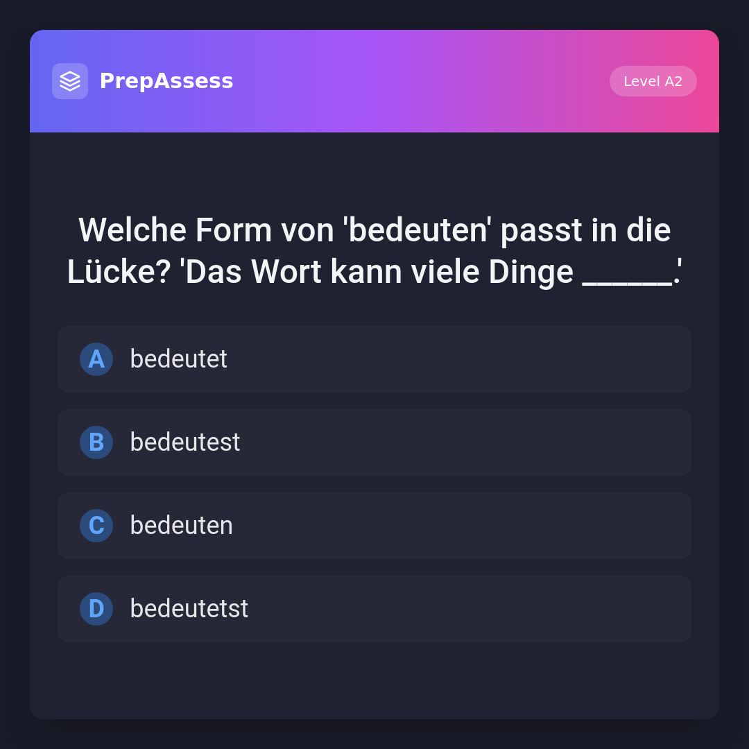 Welche Form von 'bedeuten' passt in die Lücke? 'Das Wort kann viele Dinge ______.'