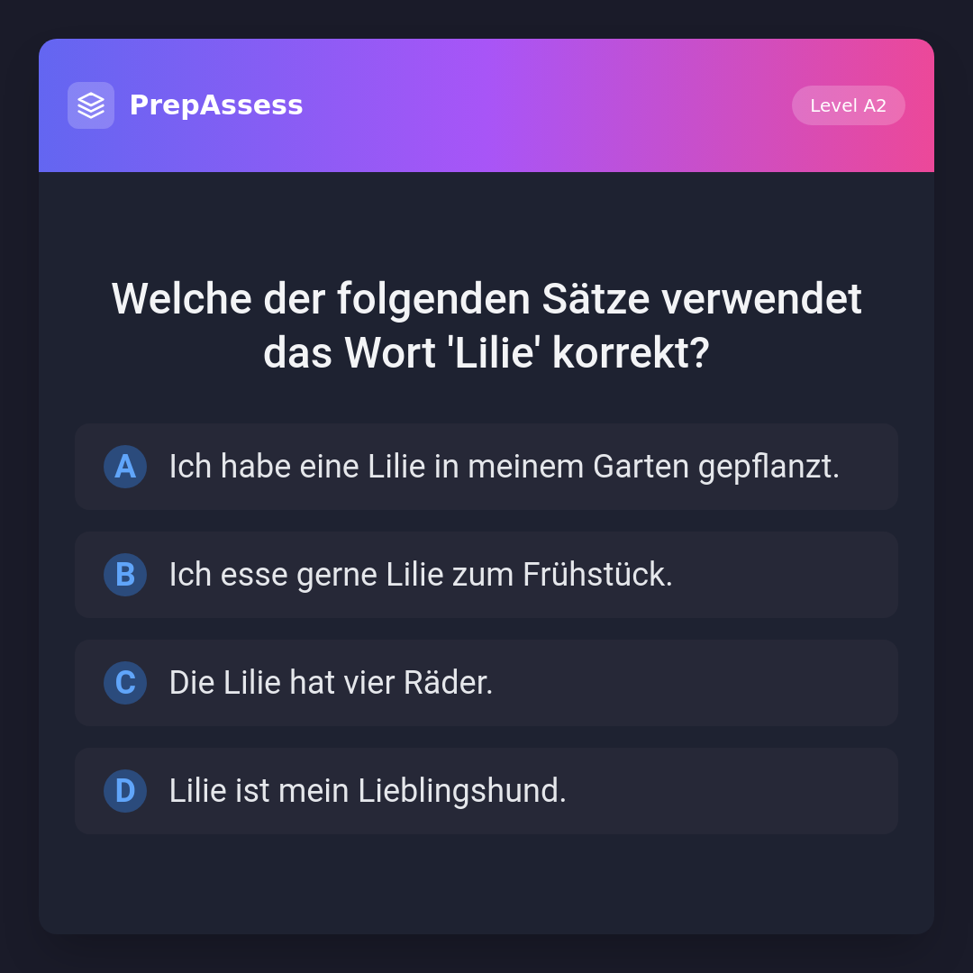 Welche der folgenden Sätze verwendet das Wort 'Lilie' korrekt?