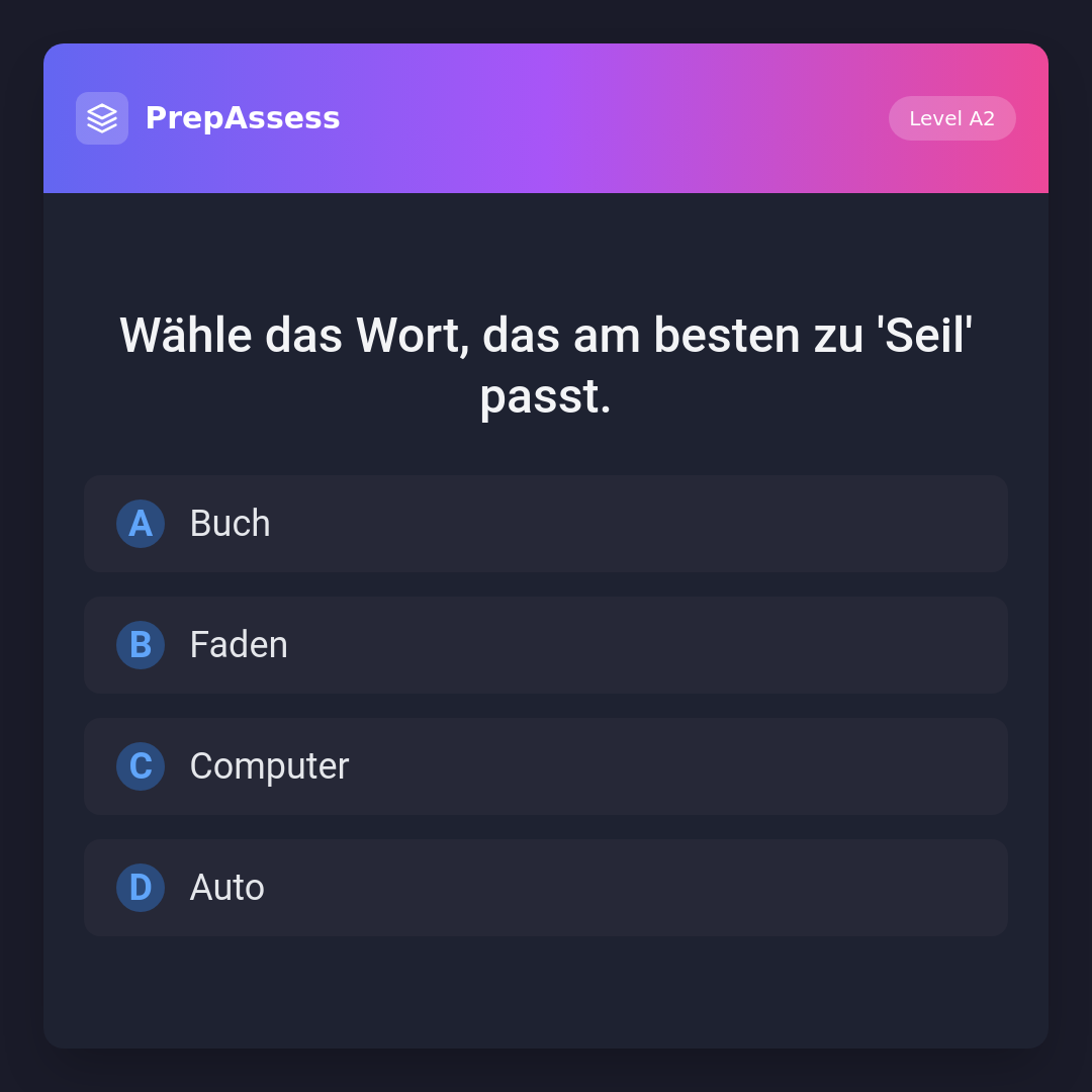 Wähle das Wort, das am besten zu 'Seil' passt.