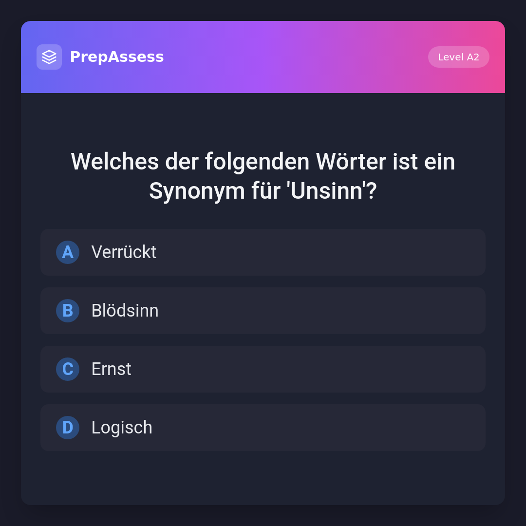 Welches der folgenden Wörter ist ein Synonym für 'Unsinn'?