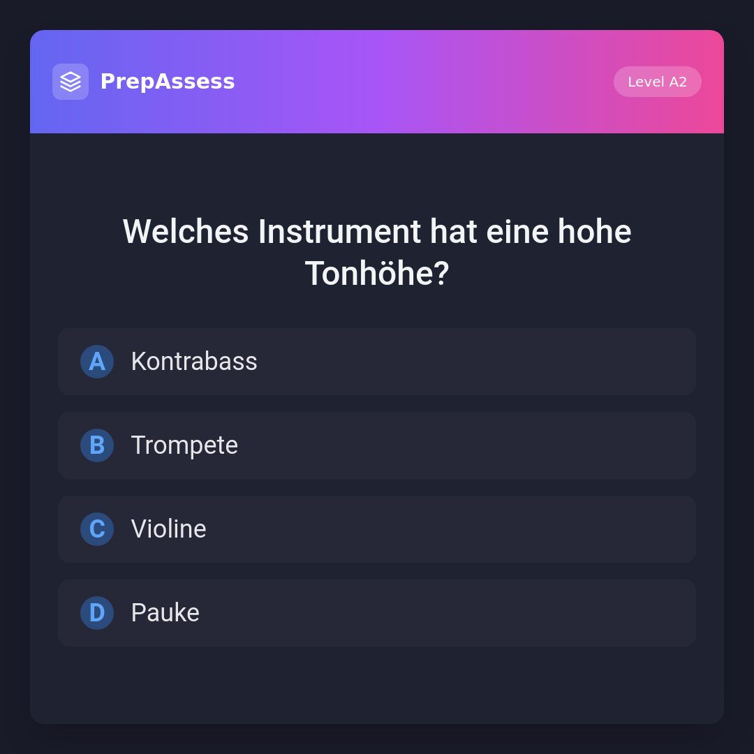 Welches Instrument hat eine hohe Tonhöhe?