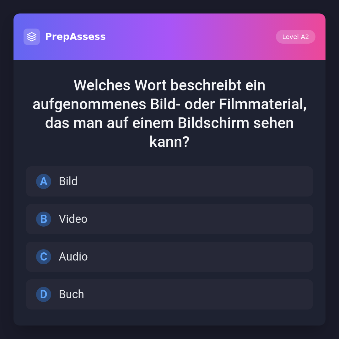 Welches Wort beschreibt ein aufgenommenes Bild- oder Filmmaterial, das man auf einem Bildschirm sehen kann?