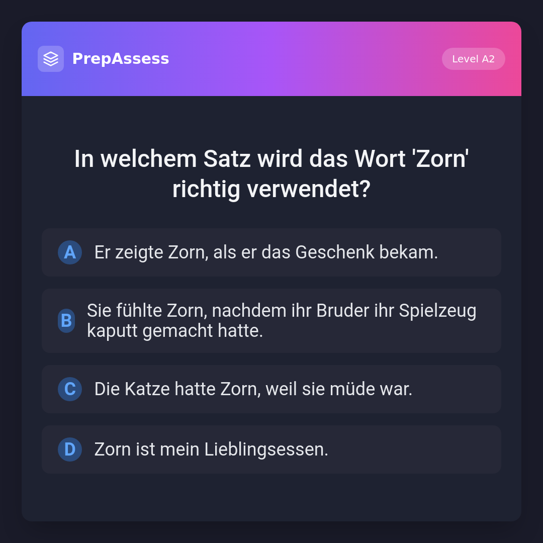 In welchem Satz wird das Wort 'Zorn' richtig verwendet?