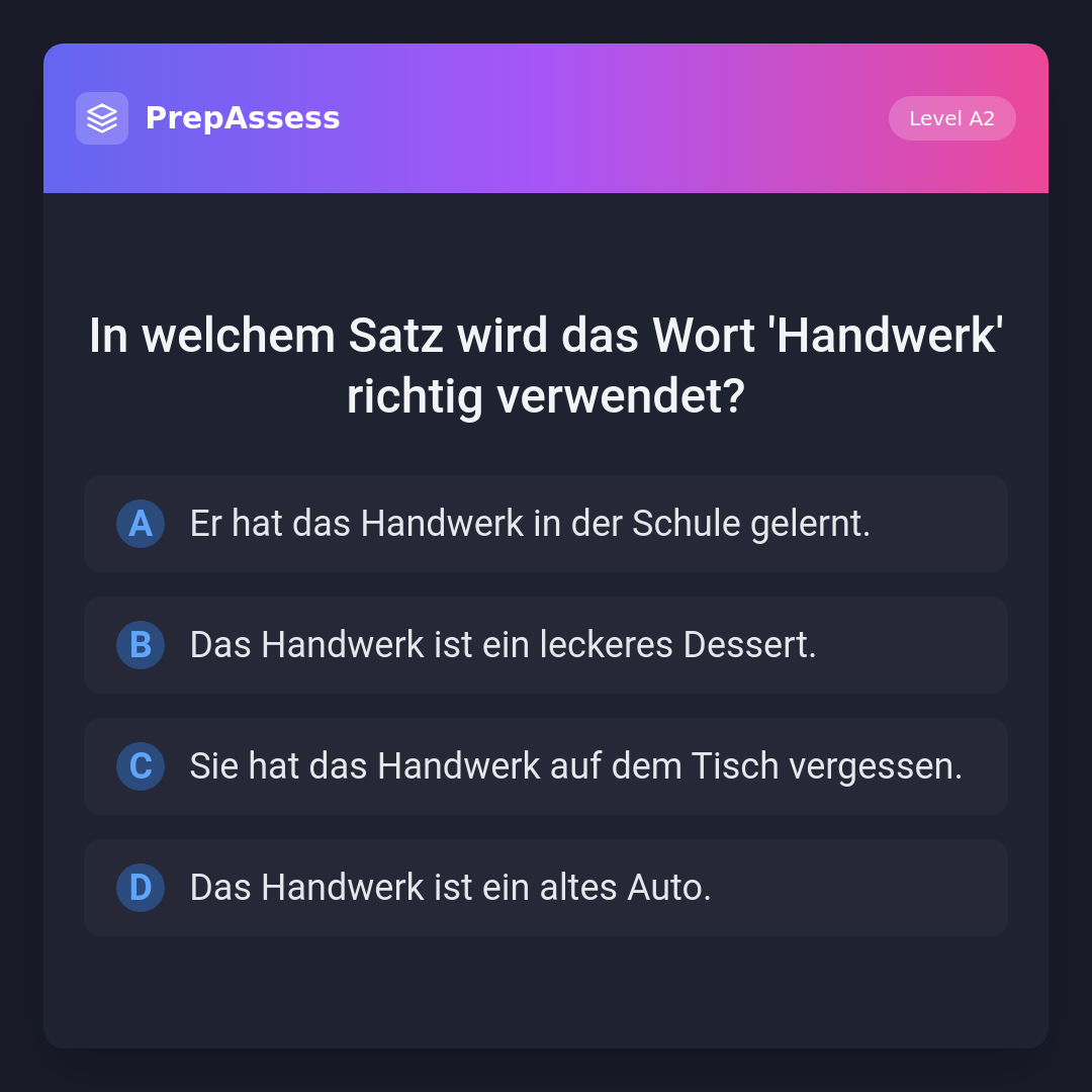 In welchem Satz wird das Wort 'Handwerk' richtig verwendet?