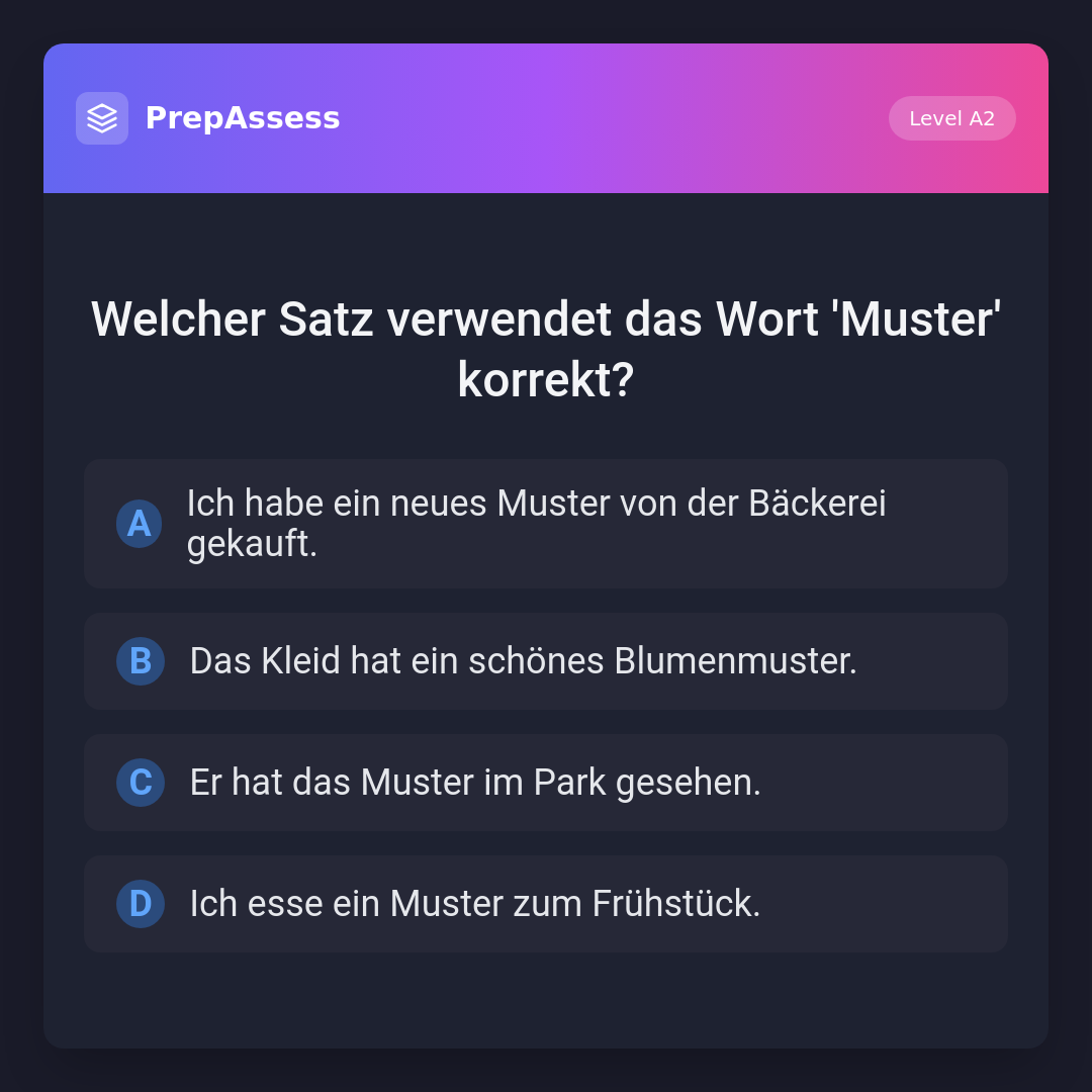 Welcher Satz verwendet das Wort 'Muster' korrekt?