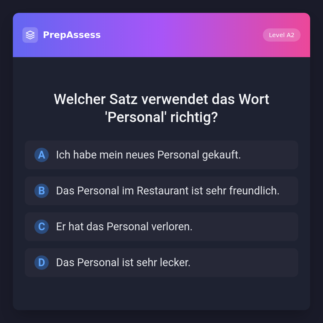 Welcher Satz verwendet das Wort 'Personal' richtig?