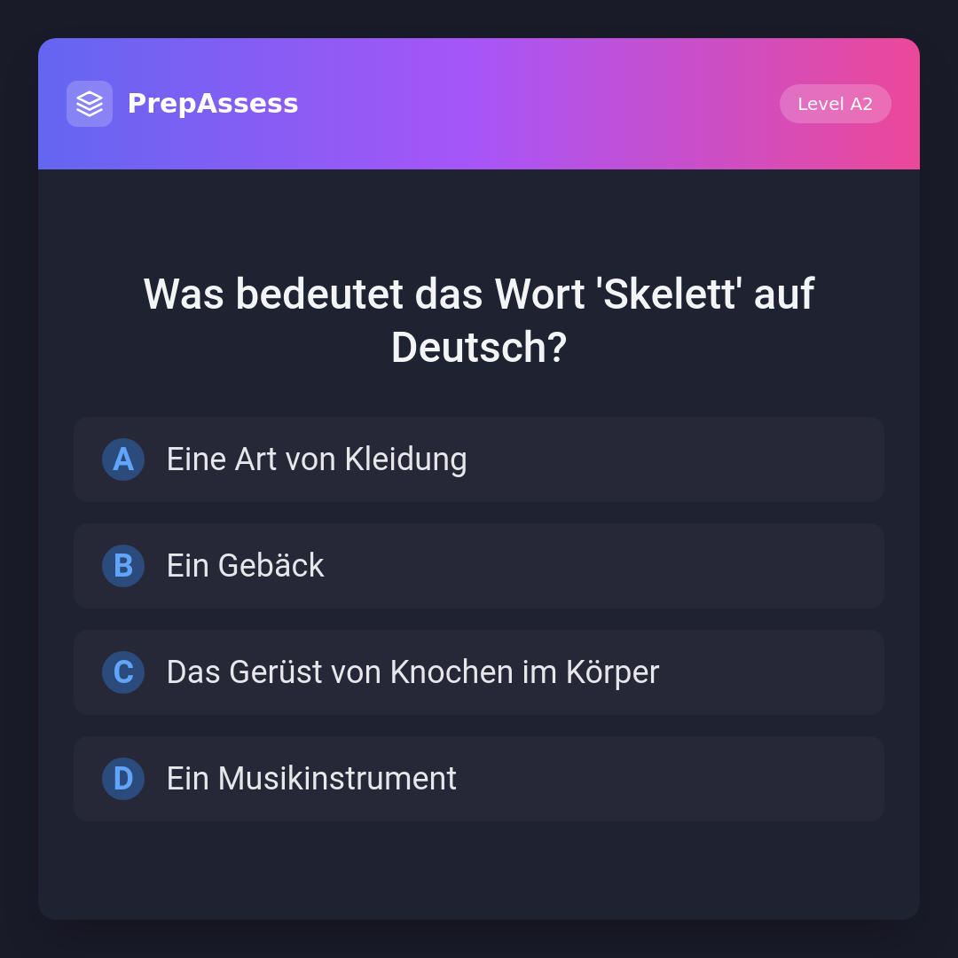 Was bedeutet das Wort 'Skelett' auf Deutsch?