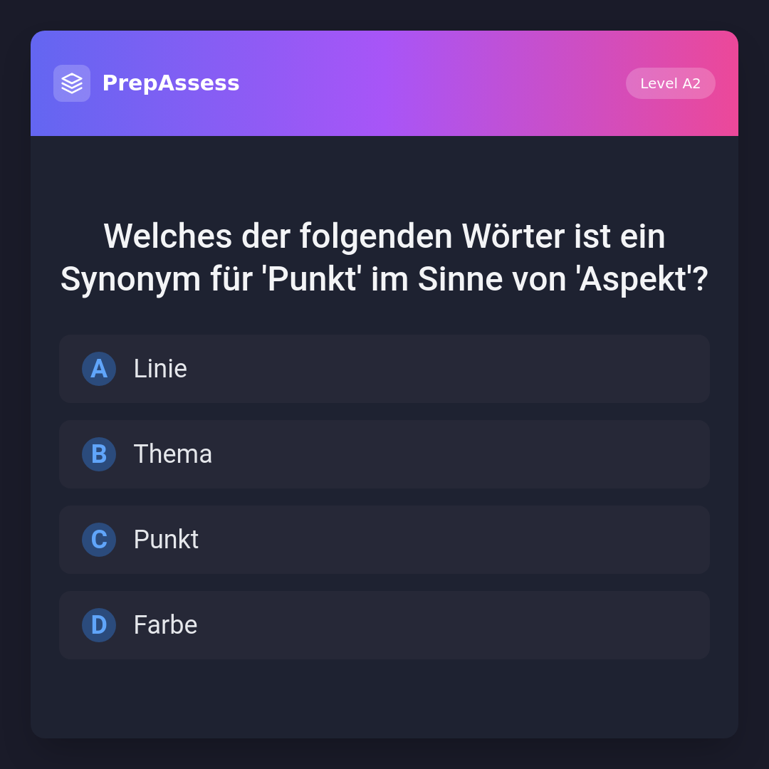 Welches der folgenden Wörter ist ein Synonym für 'Punkt' im Sinne von 'Aspekt'?