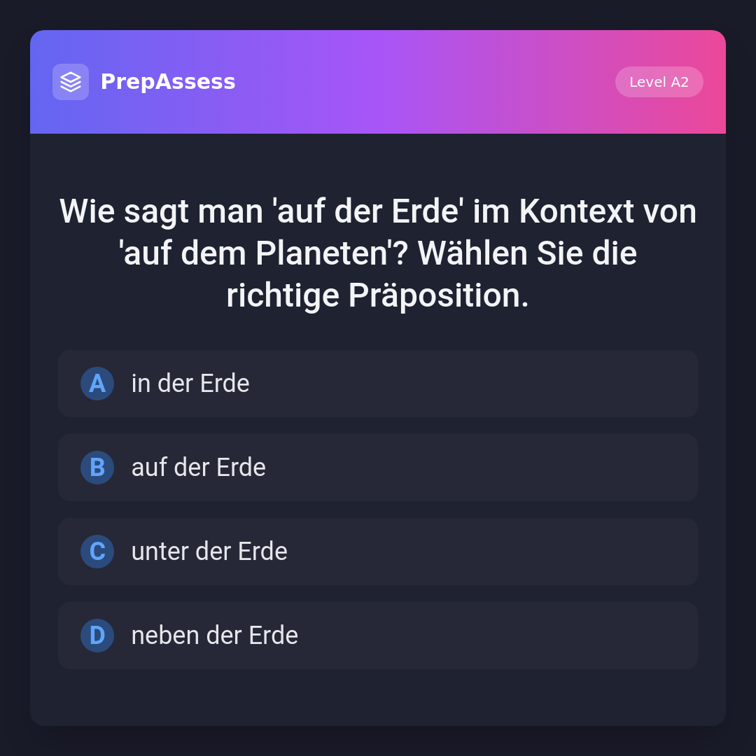 Wie sagt man 'auf der Erde' im Kontext von 'auf dem Planeten'? Wählen Sie die richtige Präposition.