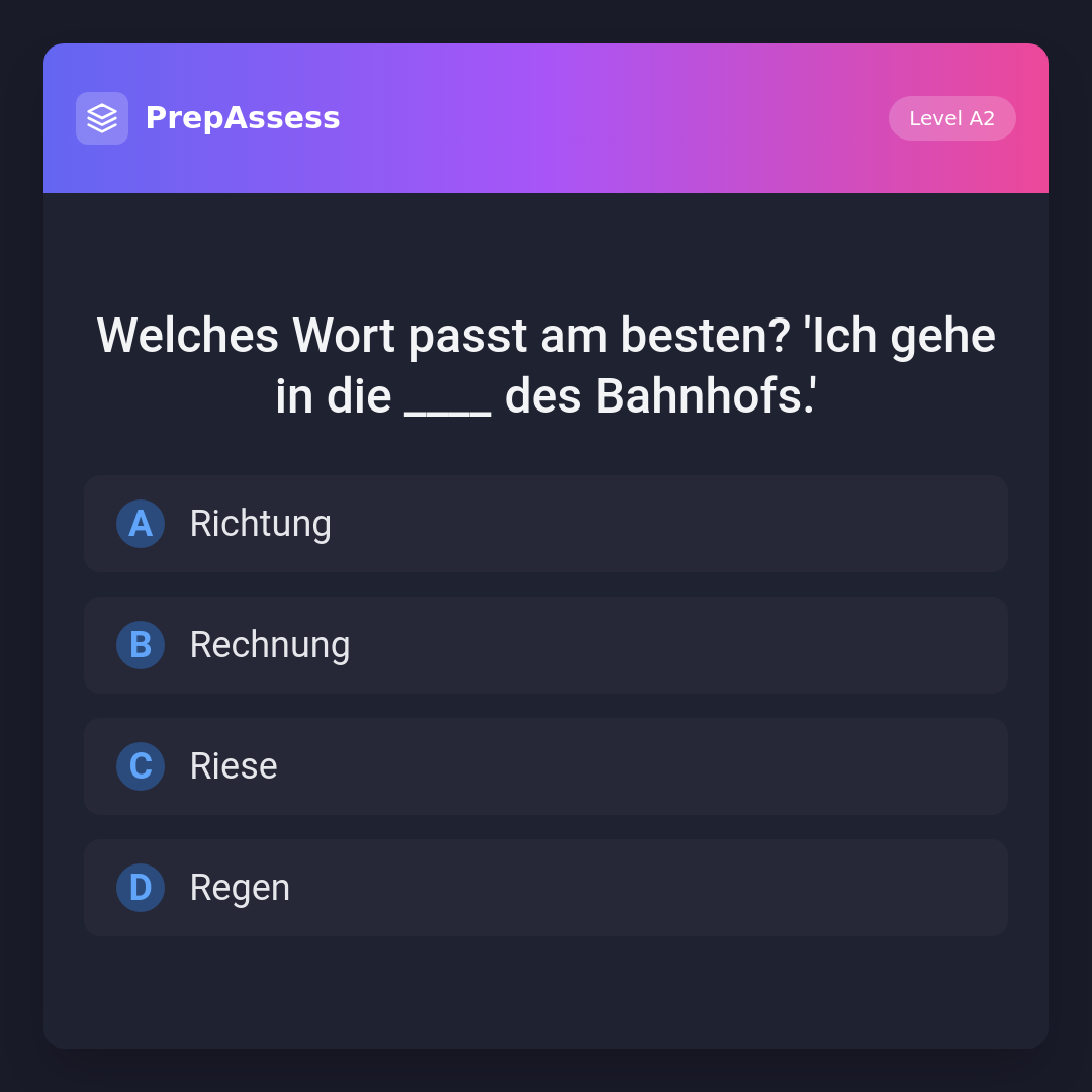 Welches Wort passt am besten? 'Ich gehe in die ____ des Bahnhofs.'