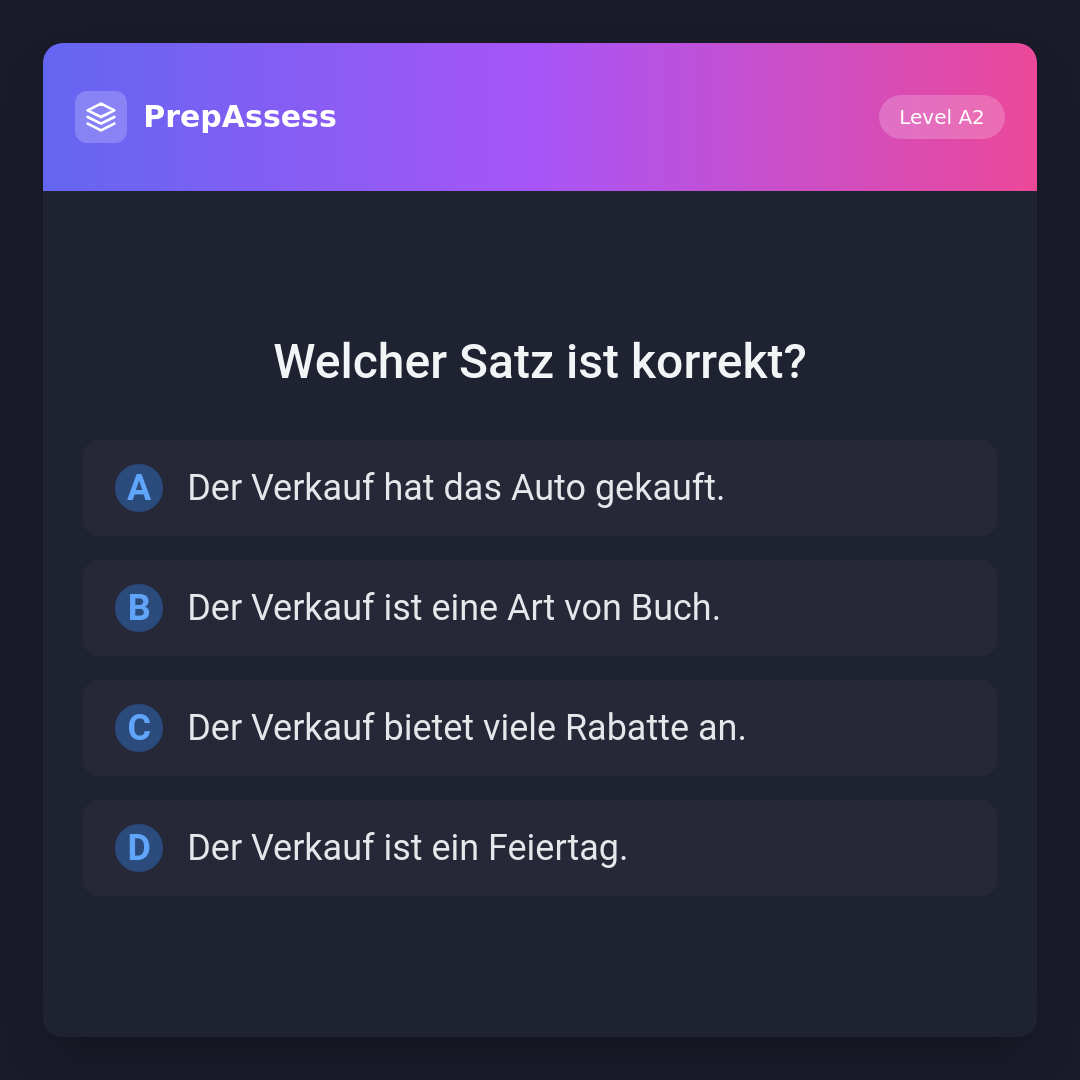 Satz c ist korrekt, da der Verkauf Rabatte anbieten kann. Verkauf ist kein Käufer, kein Buch und kein Feiertag.