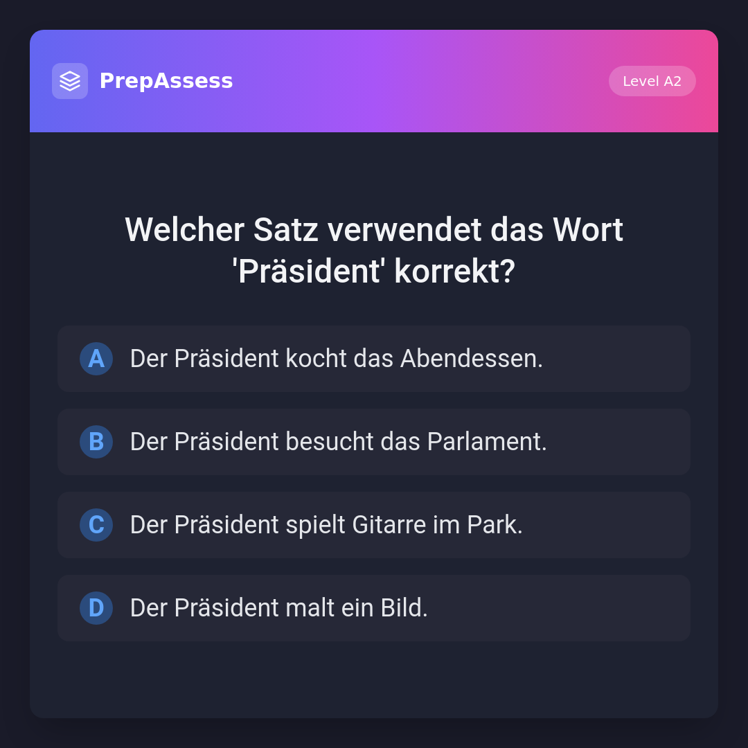 Welcher Satz verwendet das Wort 'Präsident' korrekt?