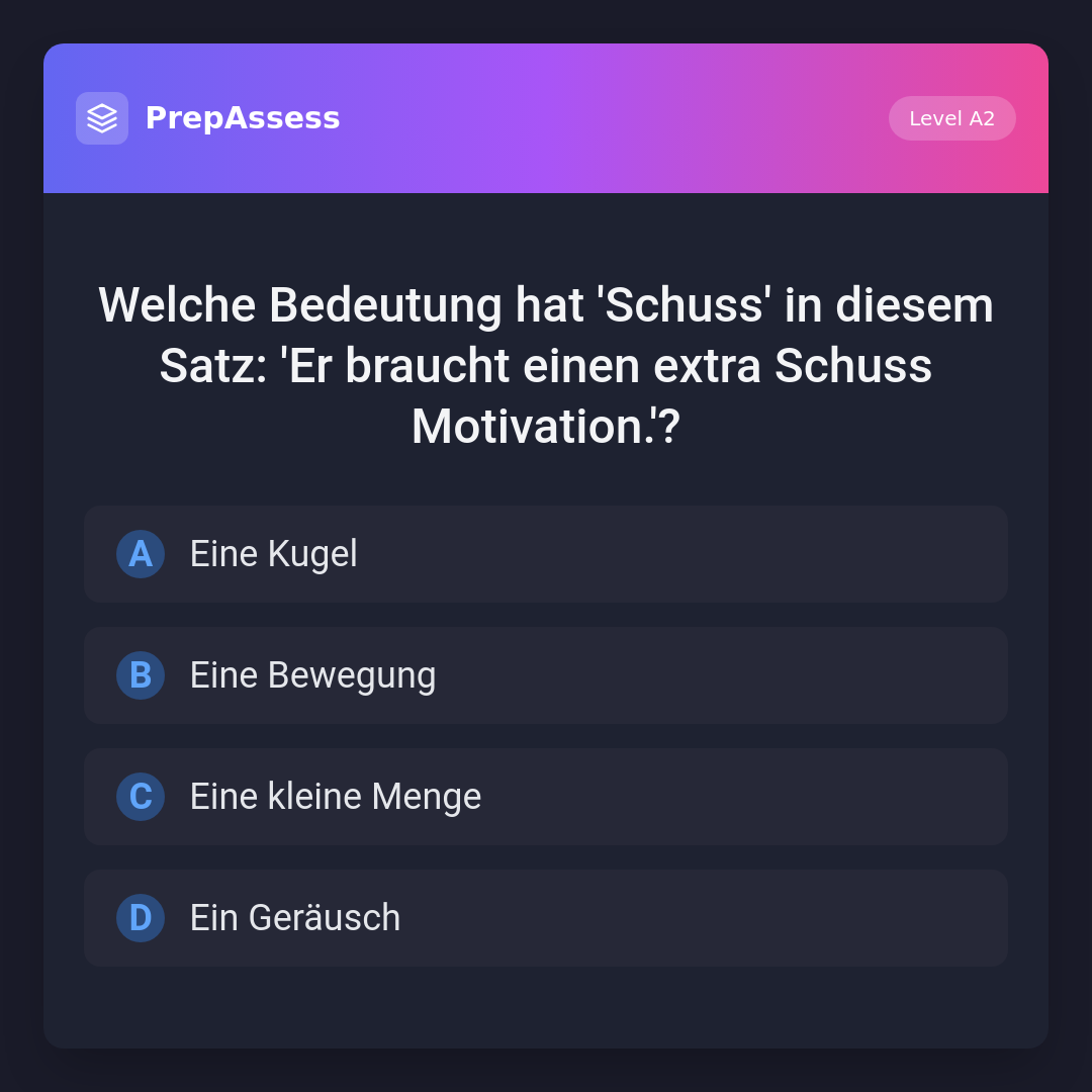 Welche Bedeutung hat 'Schuss' in diesem Satz: 'Er braucht einen extra Schuss Motivation.'?