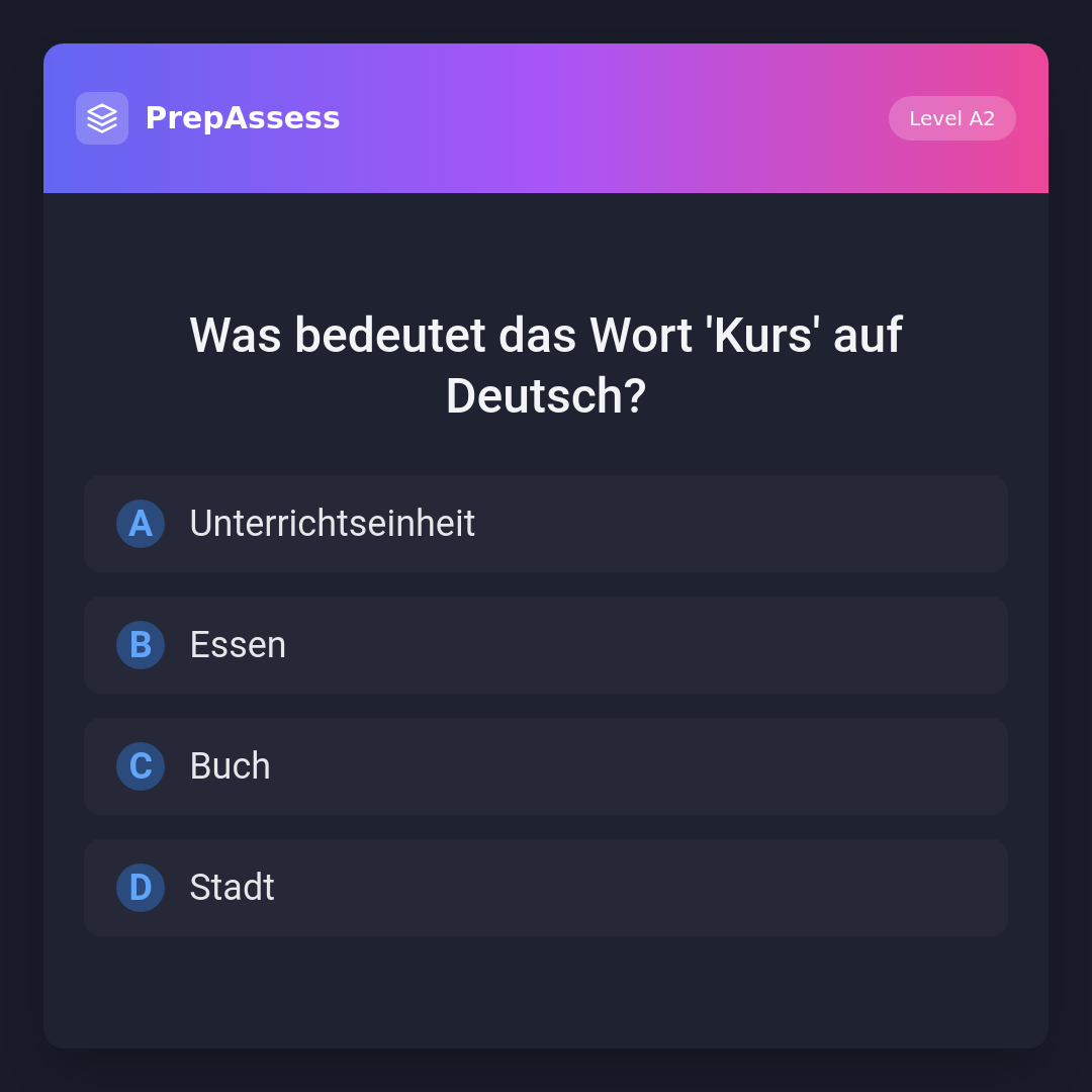 Was bedeutet das Wort 'Kurs' auf Deutsch?
