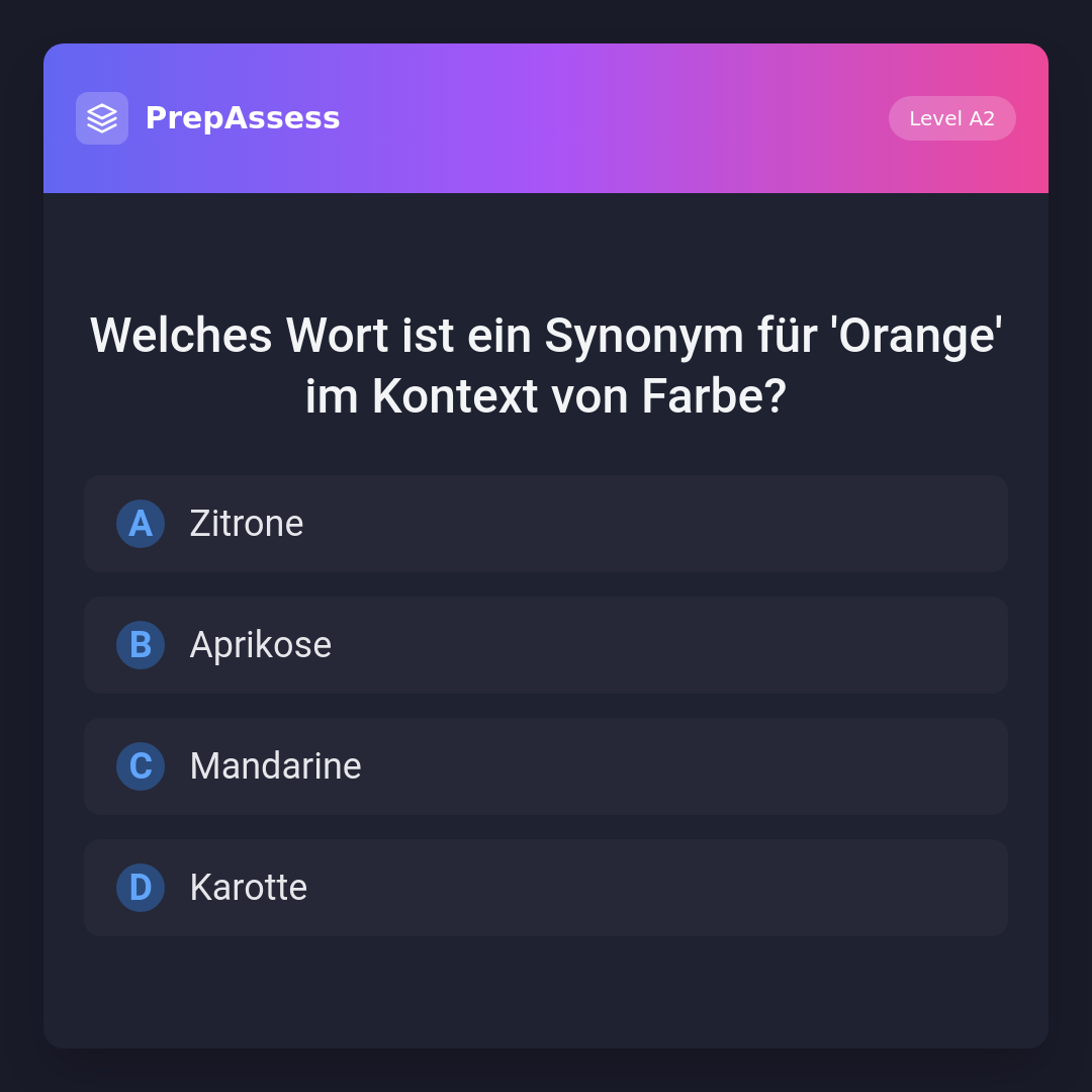 Welches Wort ist ein Synonym für 'Orange' im Kontext von Farbe?