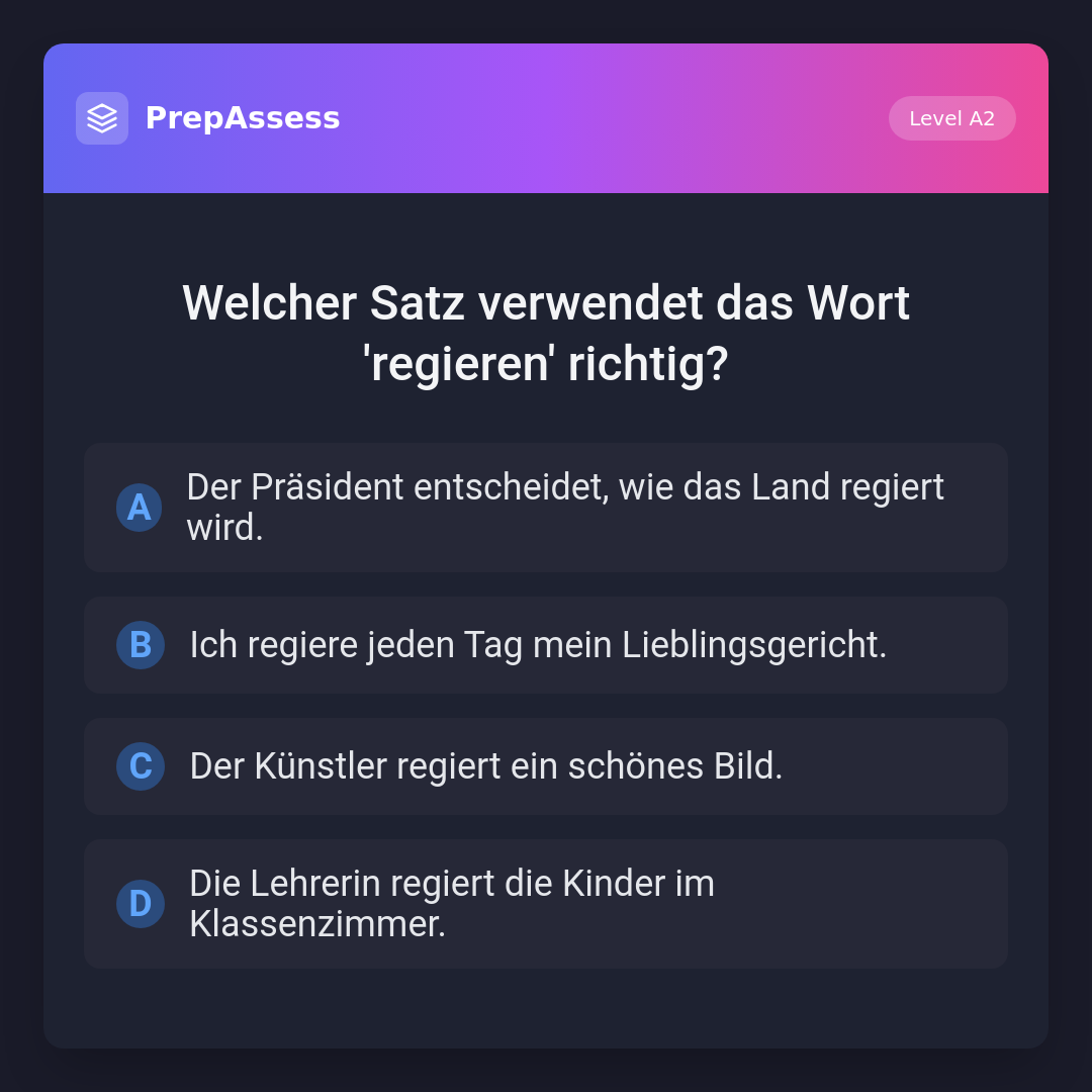 Welcher Satz verwendet das Wort 'regieren' richtig?