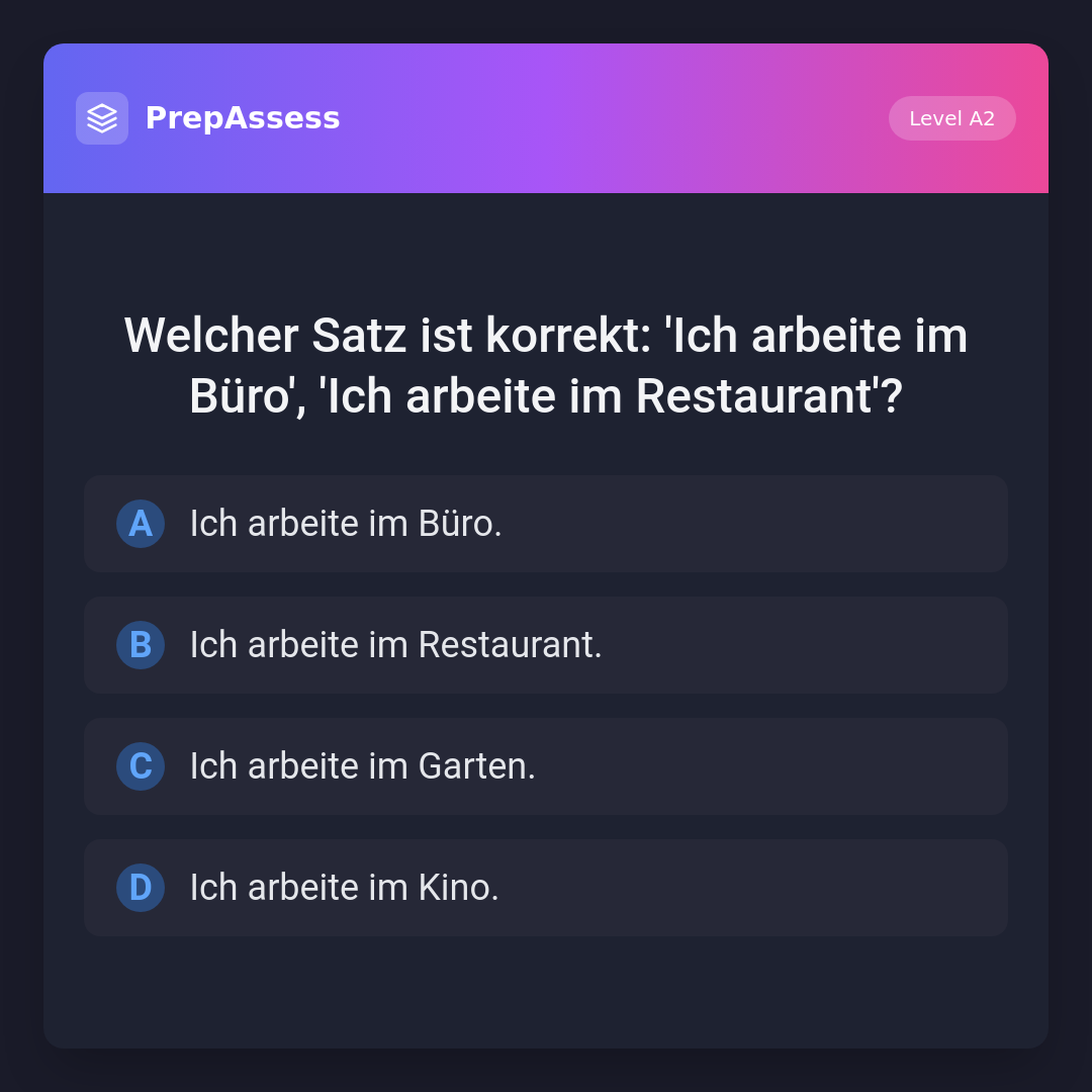 Welcher Satz ist korrekt: 'Ich arbeite im Büro', 'Ich arbeite im Restaurant'?