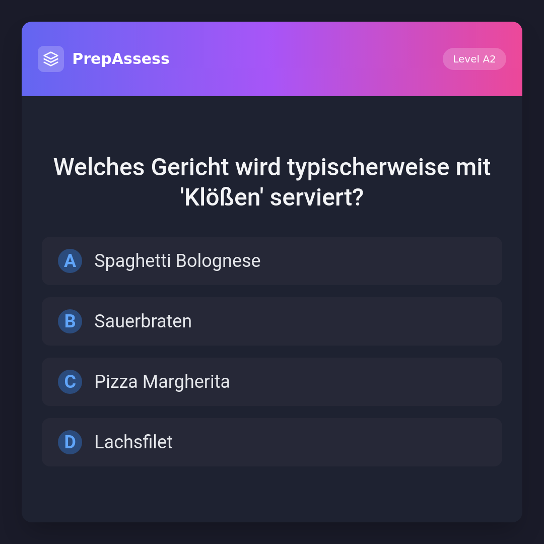 Welches Gericht wird typischerweise mit 'Klößen' serviert?