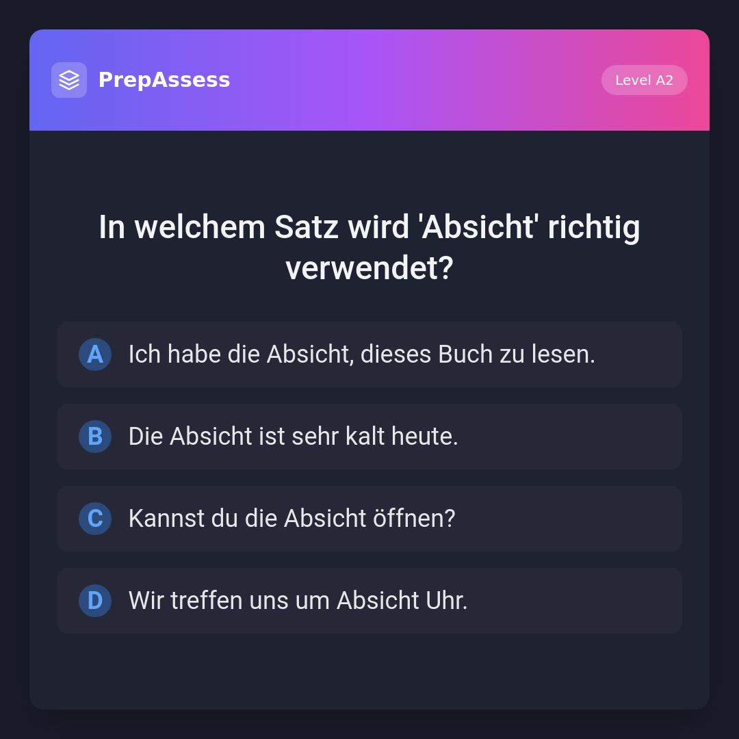 In welchem Satz wird 'Absicht' richtig verwendet?