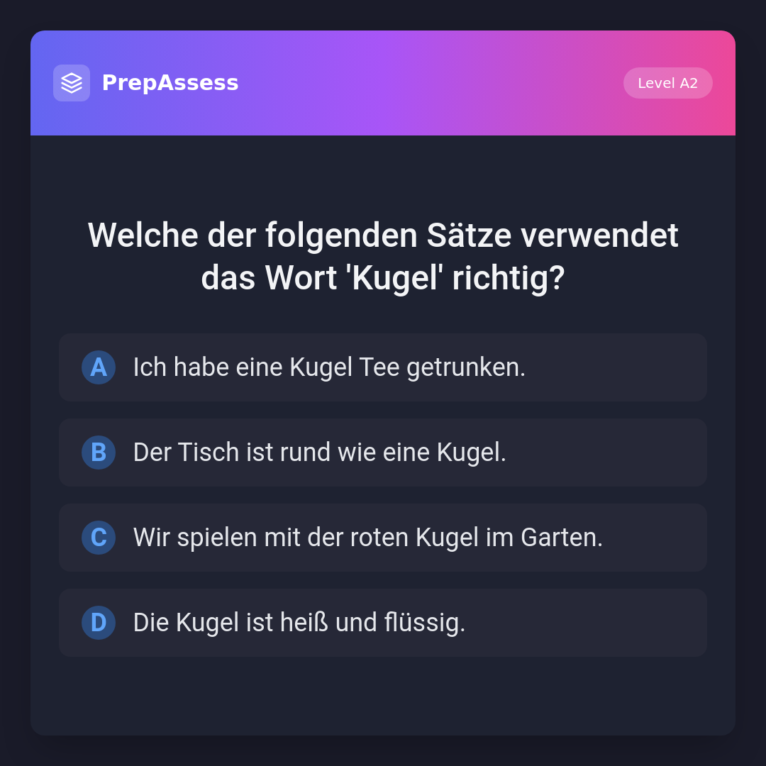 Welche der folgenden Sätze verwendet das Wort 'Kugel' richtig?