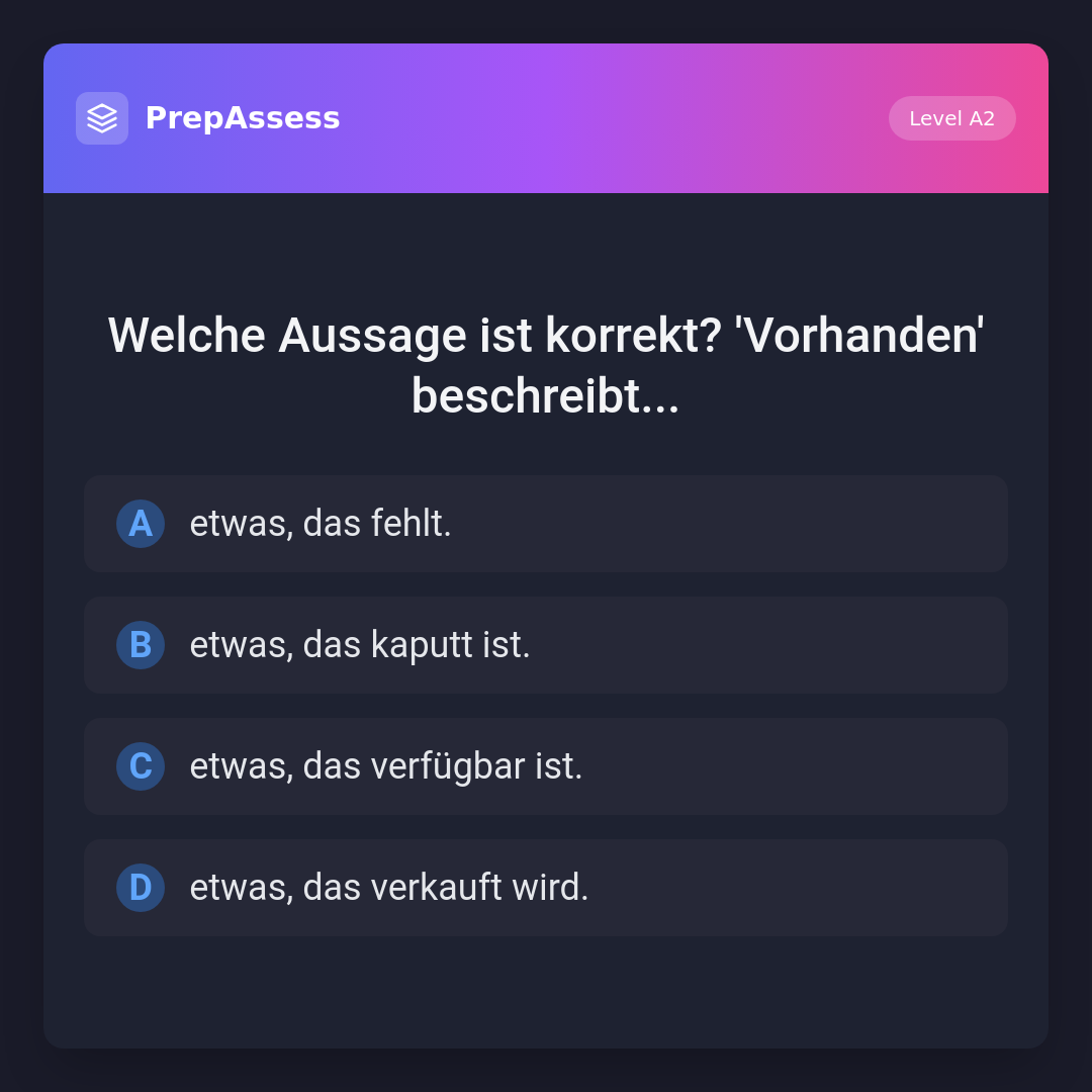 Welche Aussage ist korrekt? 'Vorhanden' beschreibt...