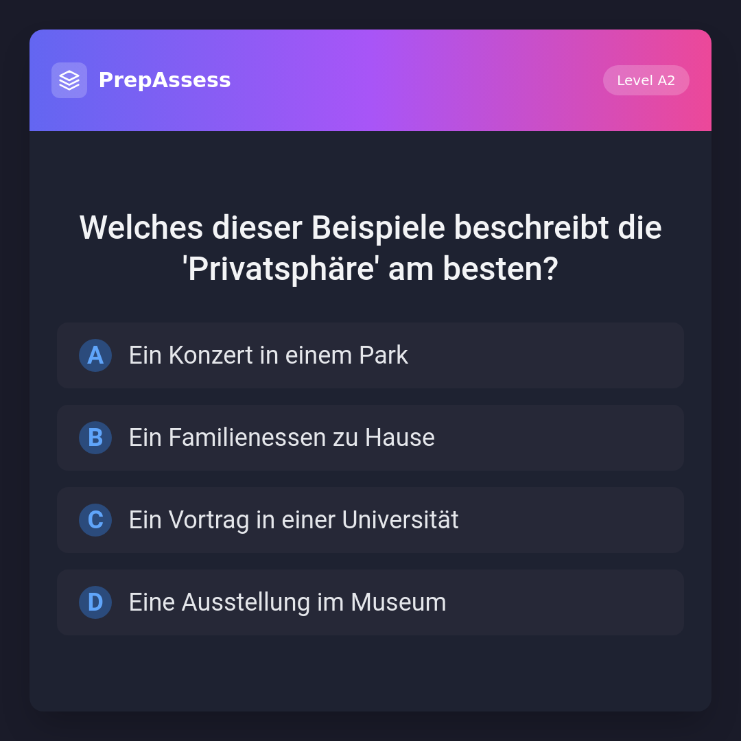 Welches dieser Beispiele beschreibt die 'Privatsphäre' am besten?