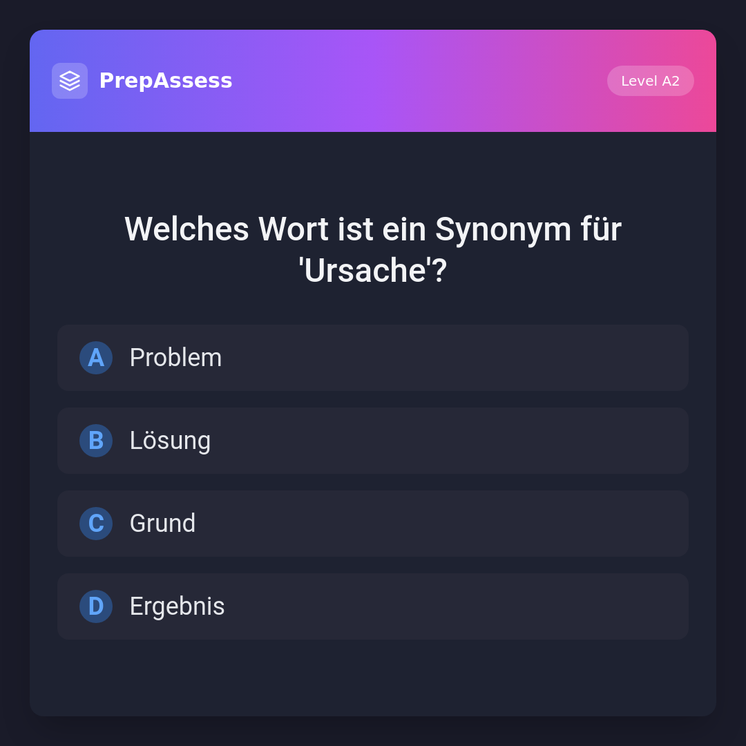 Welches Wort ist ein Synonym für 'Ursache'?
