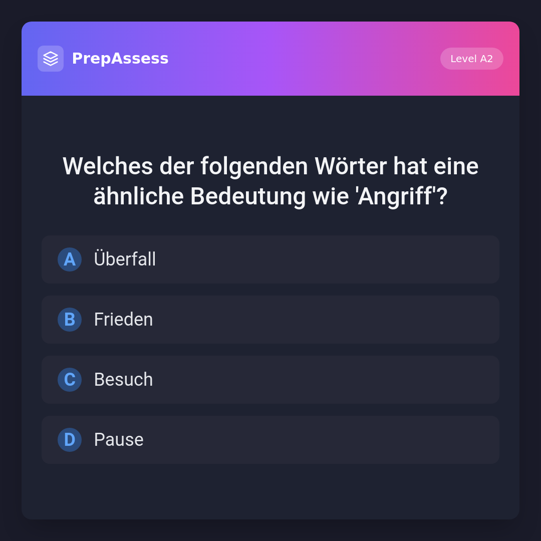 Welches der folgenden Wörter hat eine ähnliche Bedeutung wie 'Angriff'?
