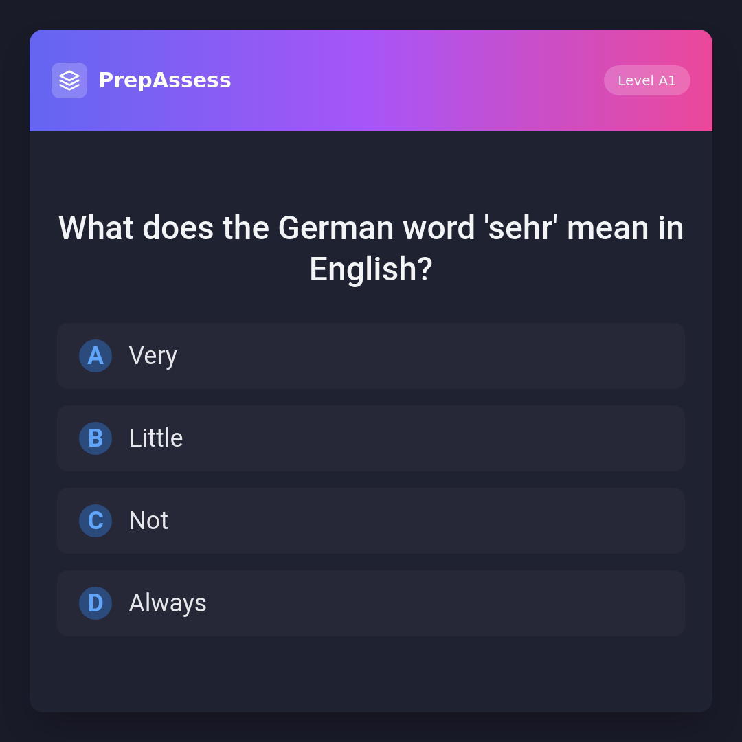 What does the German word 'sehr' mean in English?