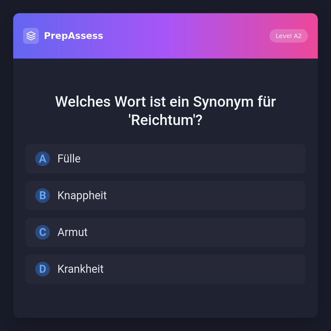 Welches Wort ist ein Synonym für 'Reichtum'?