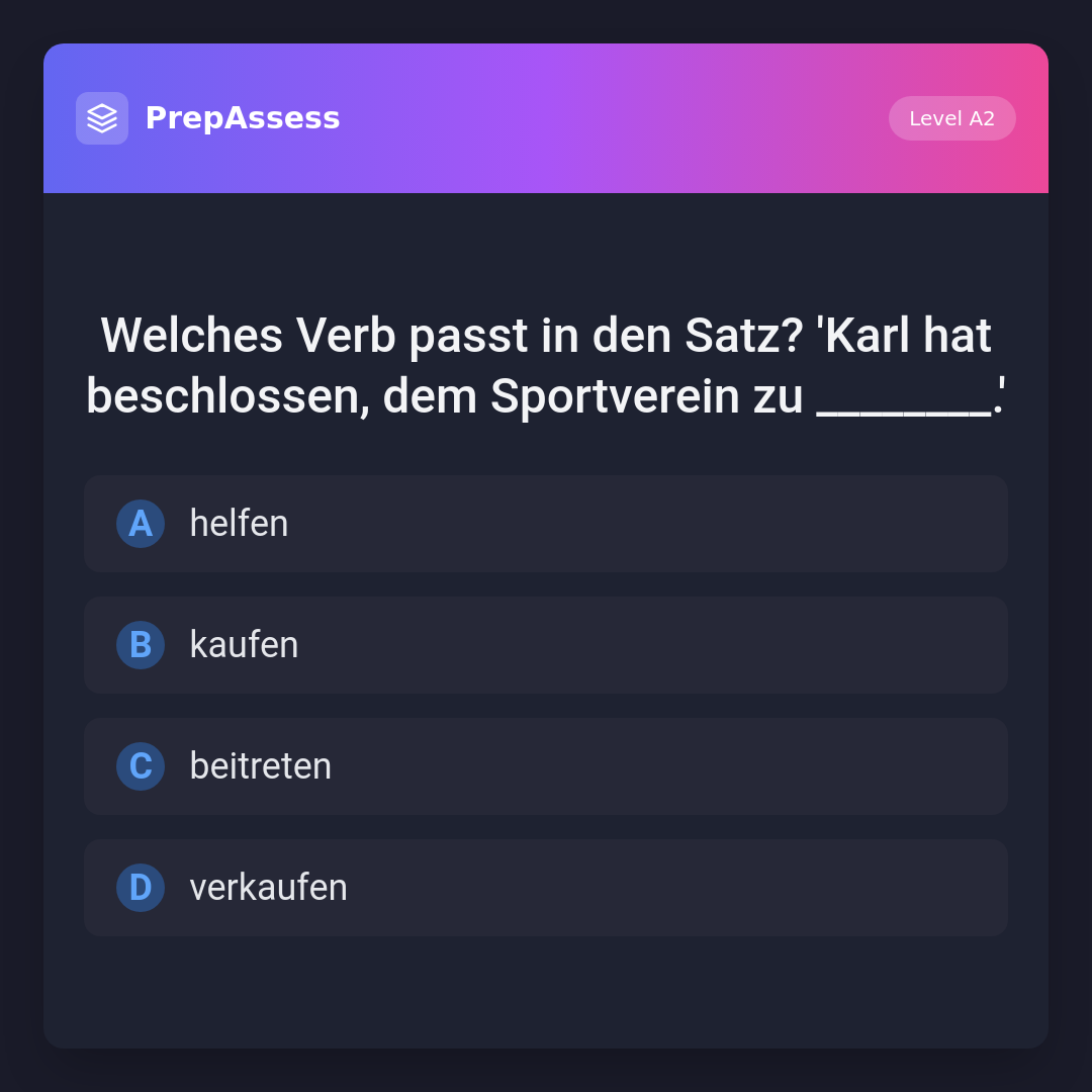 Welches Verb passt in den Satz? 'Karl hat beschlossen, dem Sportverein zu ________.'