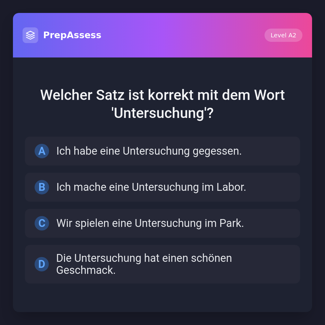 Welcher Satz ist korrekt mit dem Wort 'Untersuchung'?