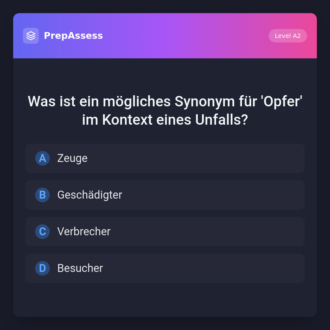 Was ist ein mögliches Synonym für 'Opfer' im Kontext eines Unfalls?