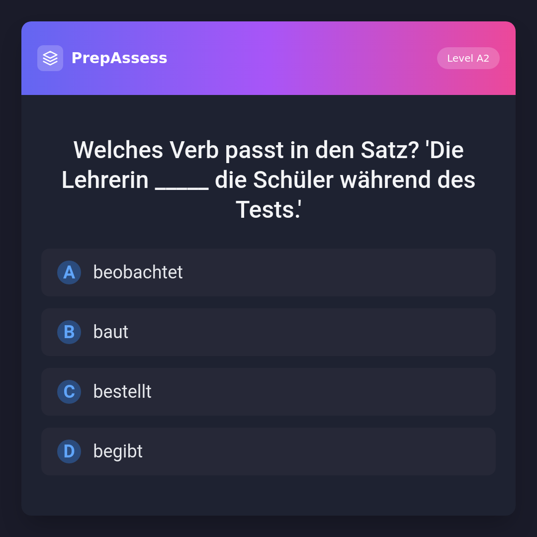 Welches Verb passt in den Satz? 'Die Lehrerin _____ die Schüler während des Tests.'