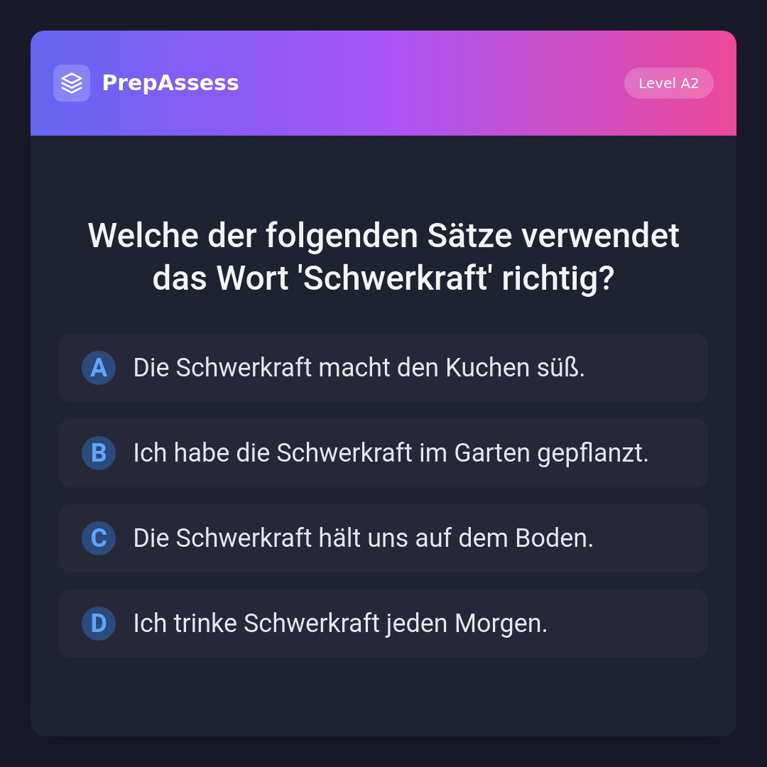 Welche der folgenden Sätze verwendet das Wort 'Schwerkraft' richtig?