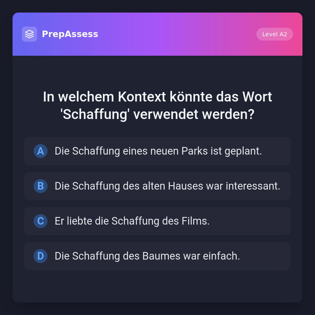 In welchem Kontext könnte das Wort 'Schaffung' verwendet werden?