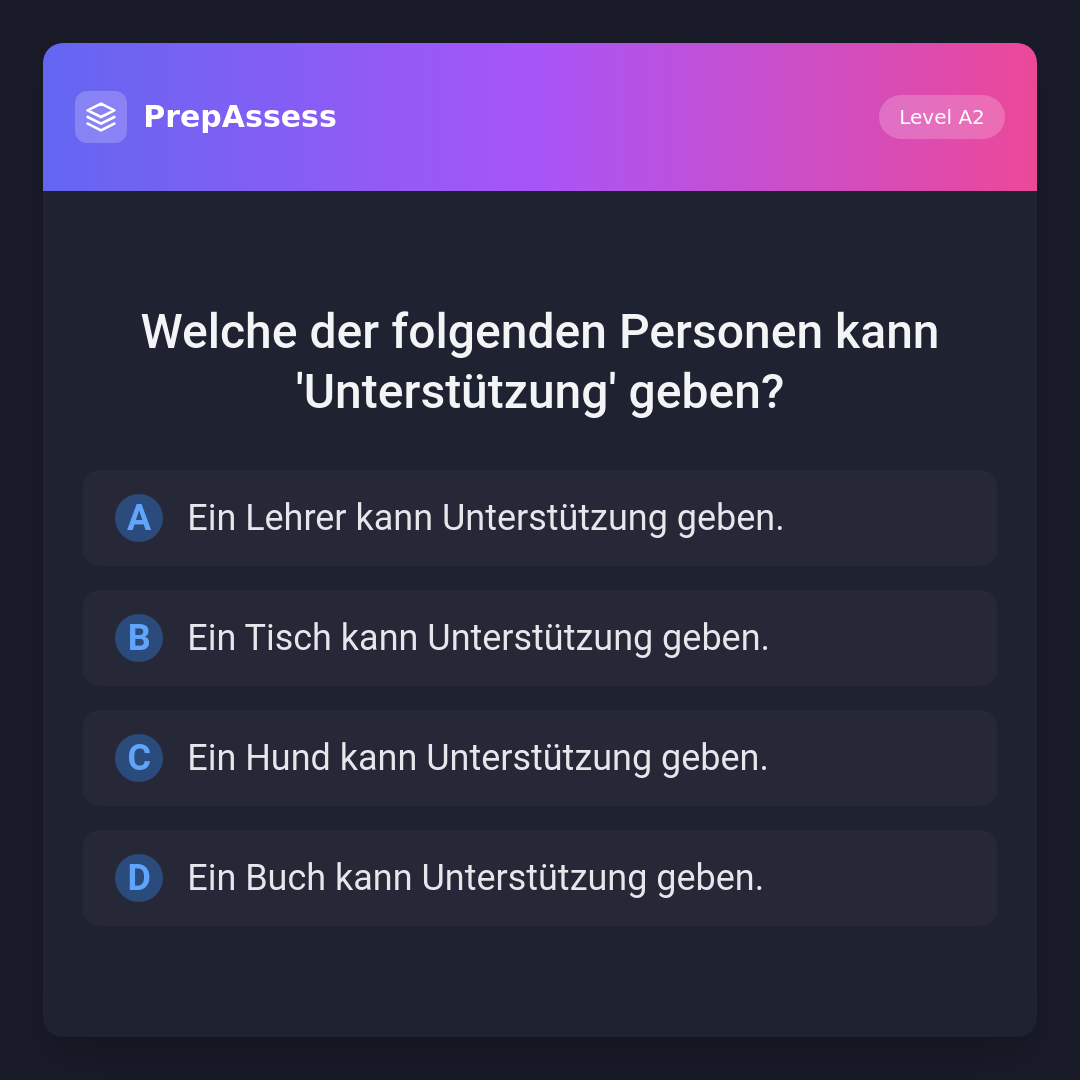 Welche der folgenden Personen kann 'Unterstützung' geben?