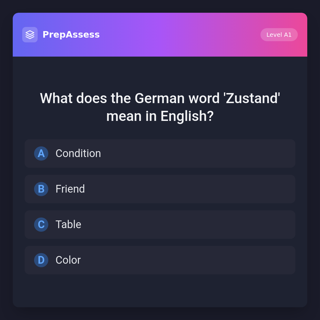 What does the German word 'Zustand' mean in English?