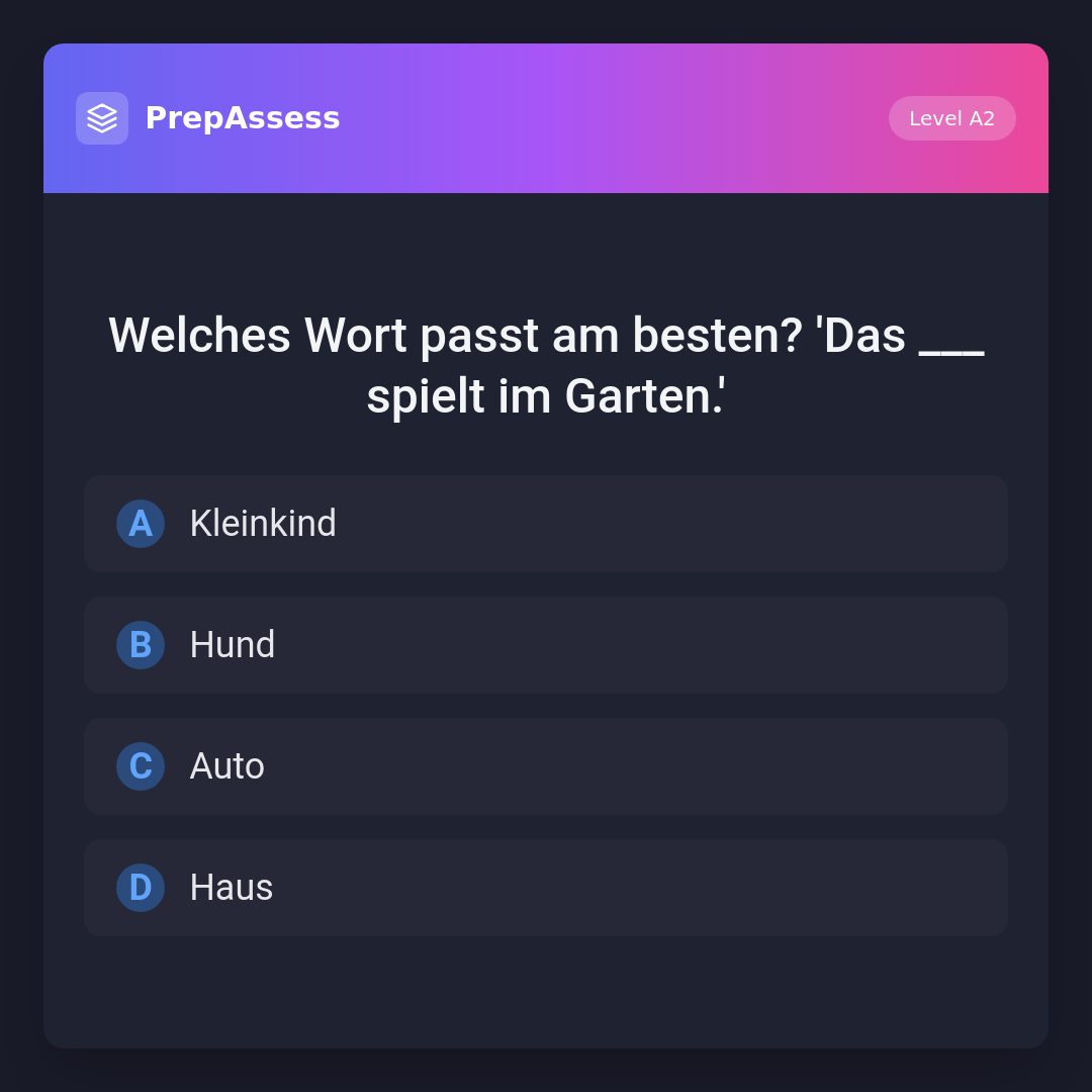 Welches Wort passt am besten? 'Das ___ spielt im Garten.'