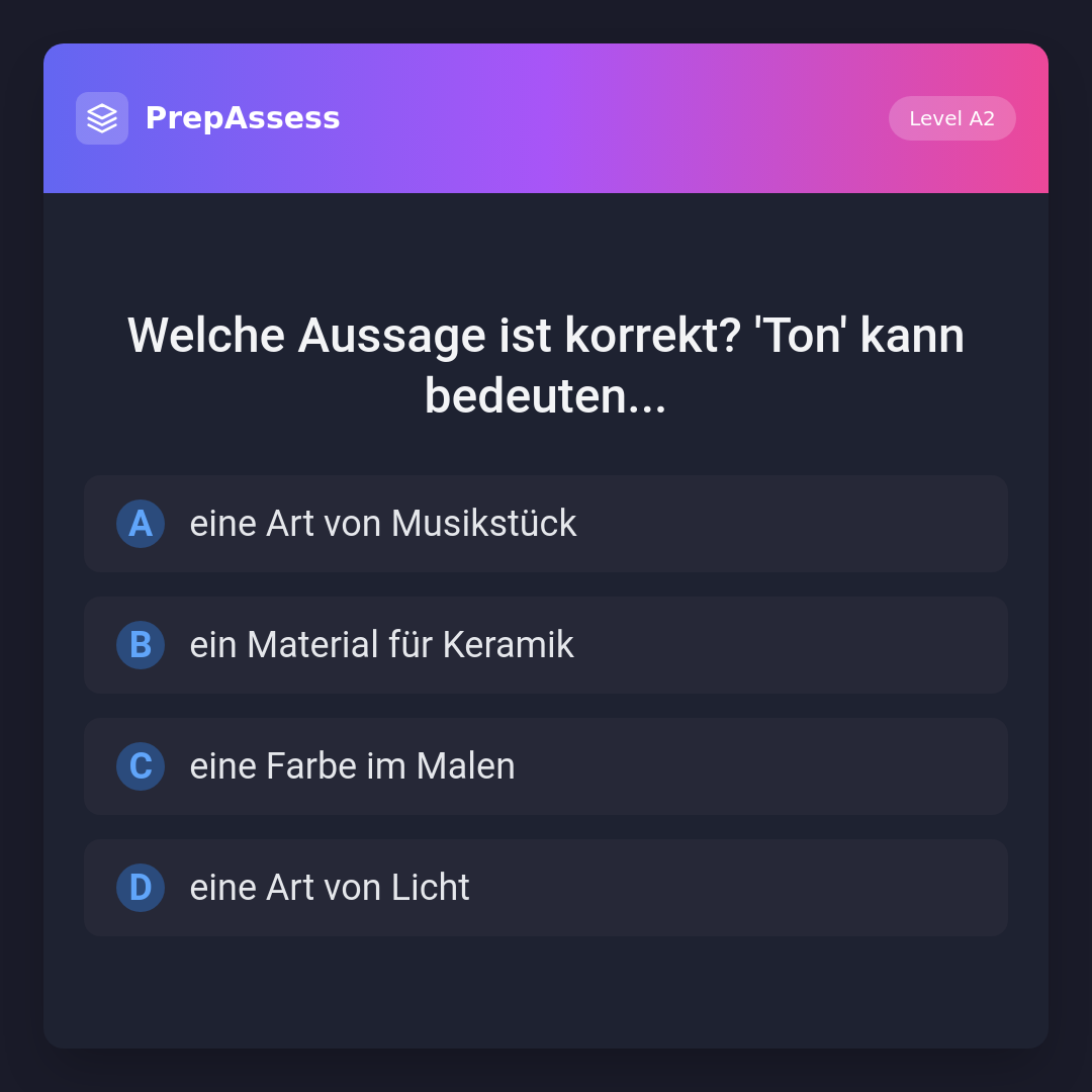 Welche Aussage ist korrekt? 'Ton' kann bedeuten...
