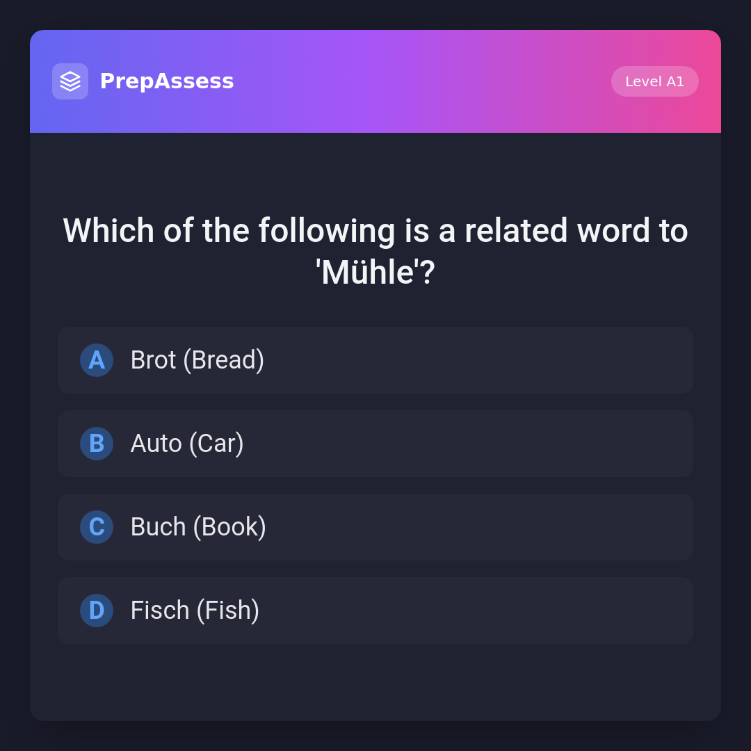 Which of the following is a related word to 'Mühle'?
