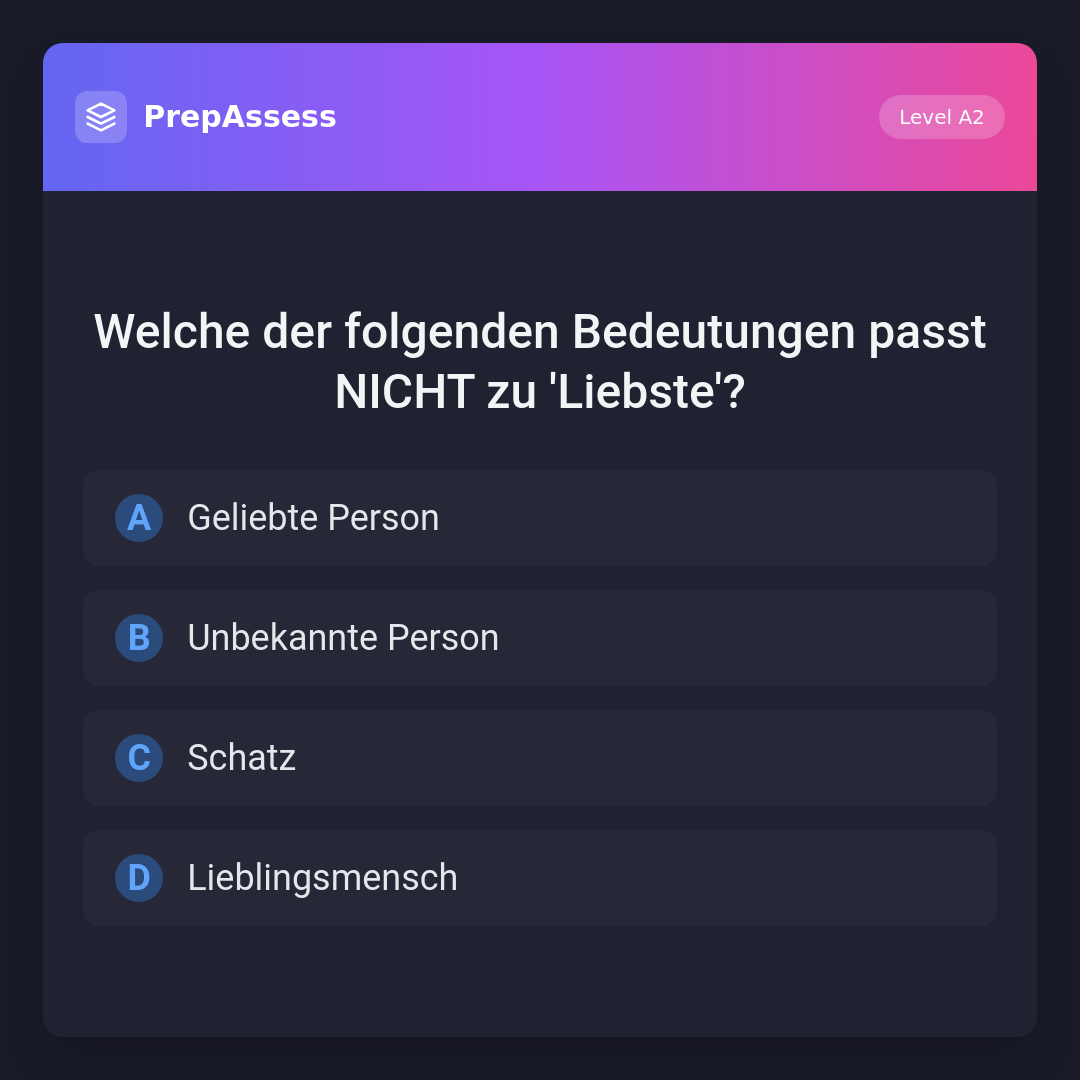 Welche der folgenden Bedeutungen passt NICHT zu 'Liebste'?