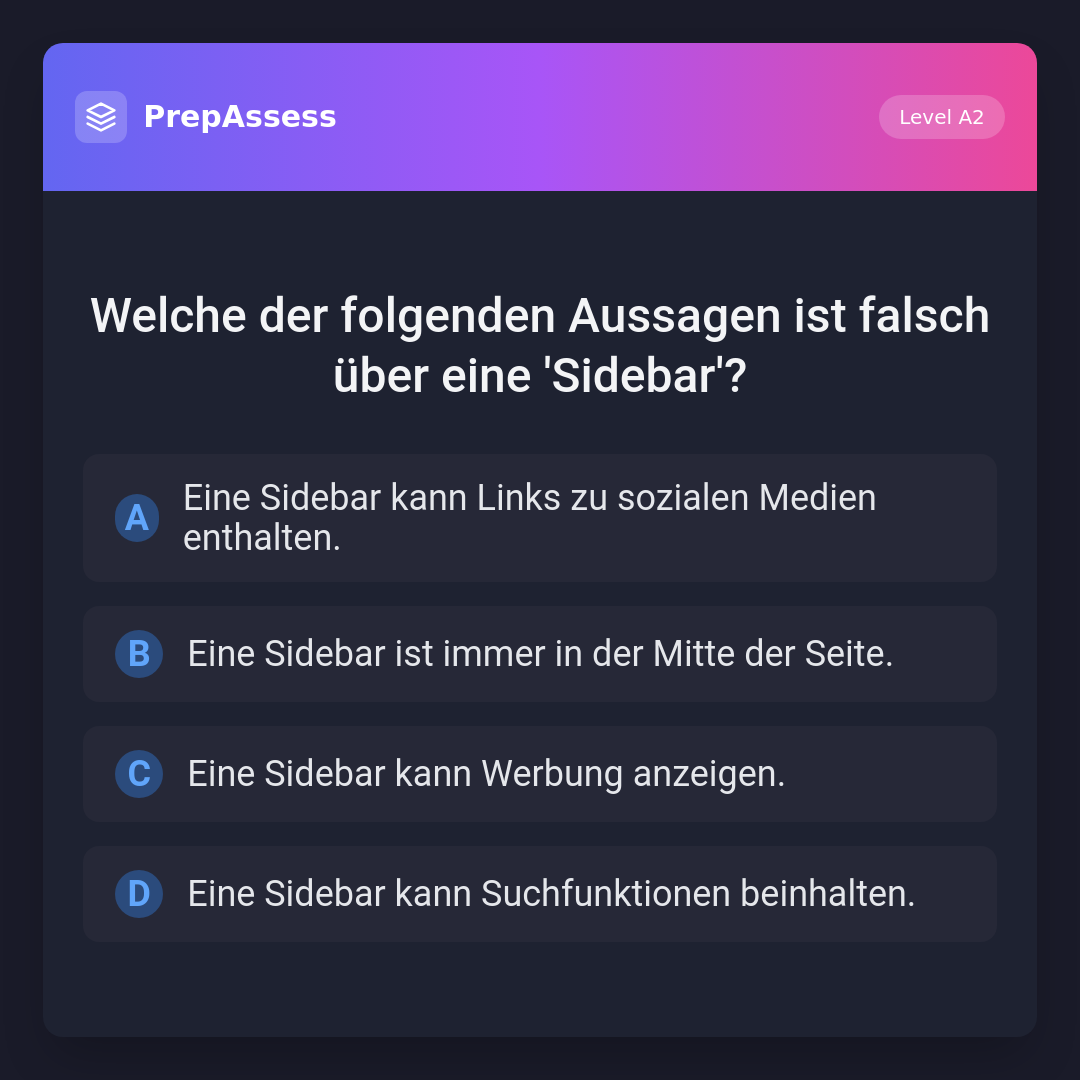Welche der folgenden Aussagen ist falsch über eine 'Sidebar'?