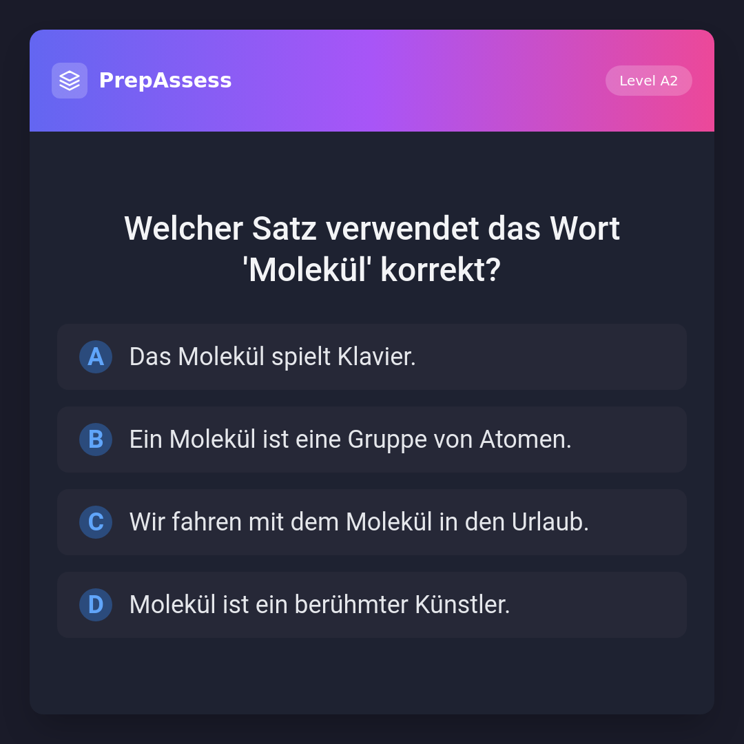 Welcher Satz verwendet das Wort 'Molekül' korrekt?